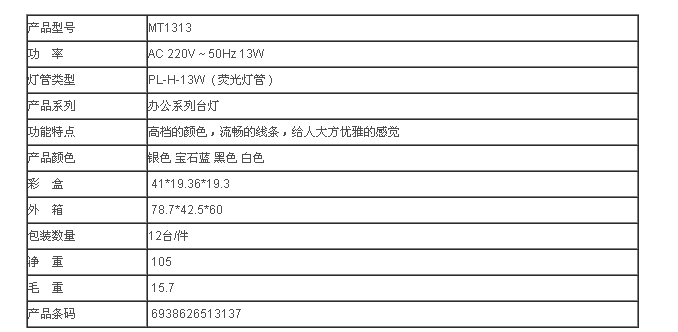 百利威 办公系列 台灯 MT1313 荧光灯管