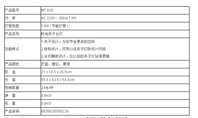 百利威 时尚夹子台灯 MT928 节能灯管 13W
