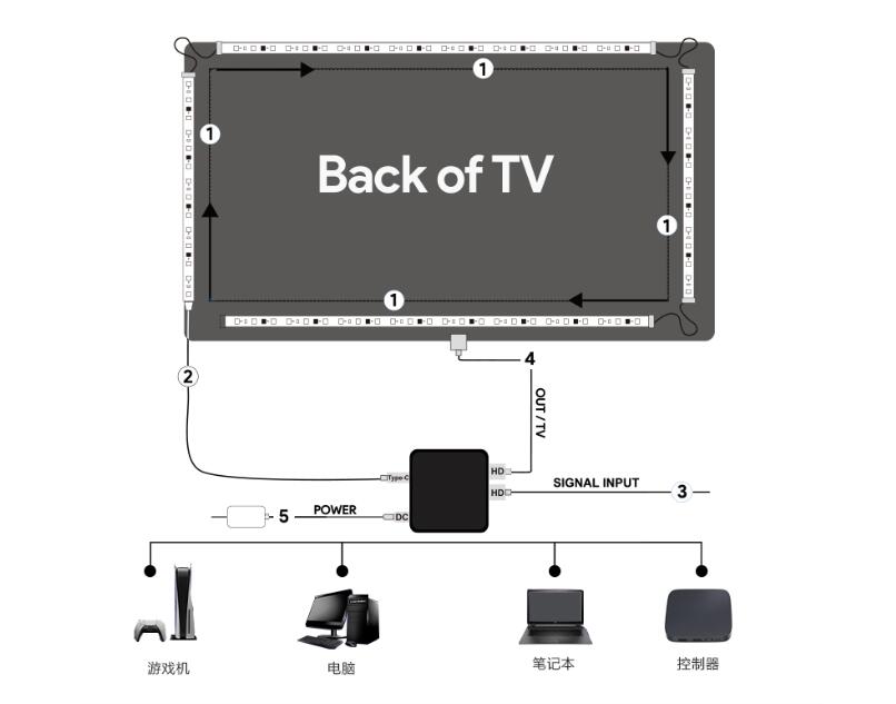 智能涂鸦APP电视HDMI灯带随屏同步背景灯流光溢彩语音控制