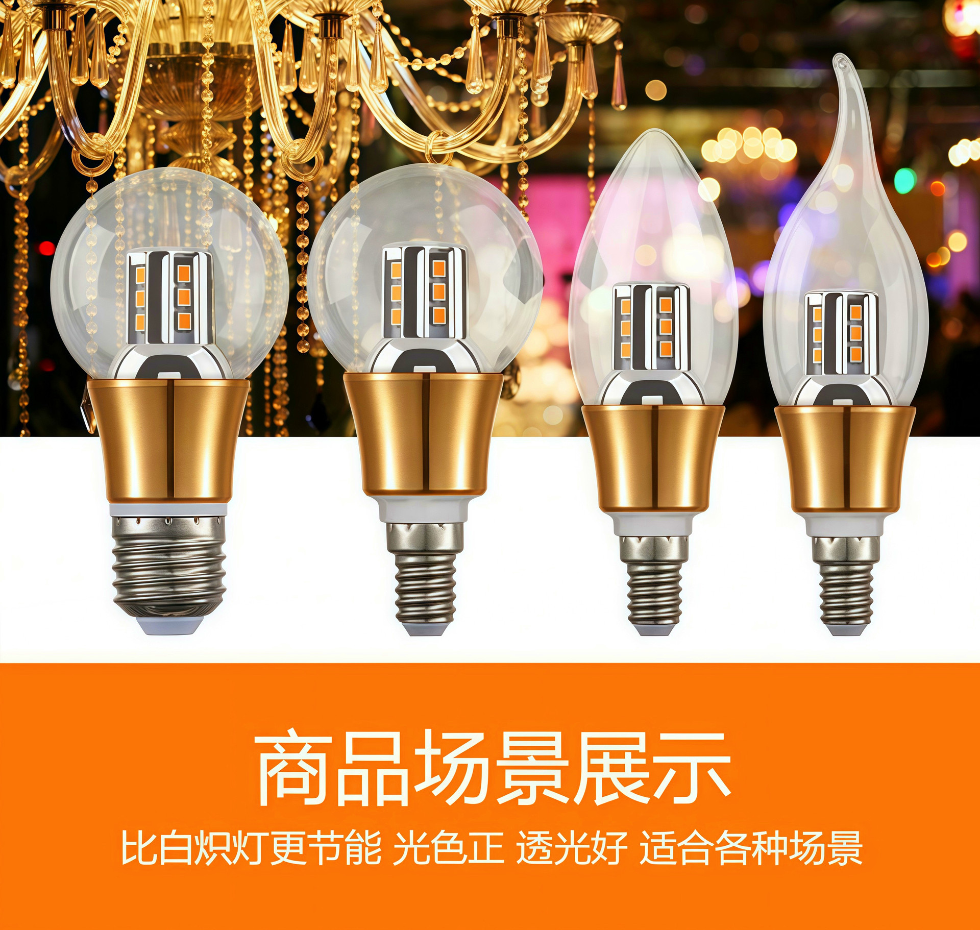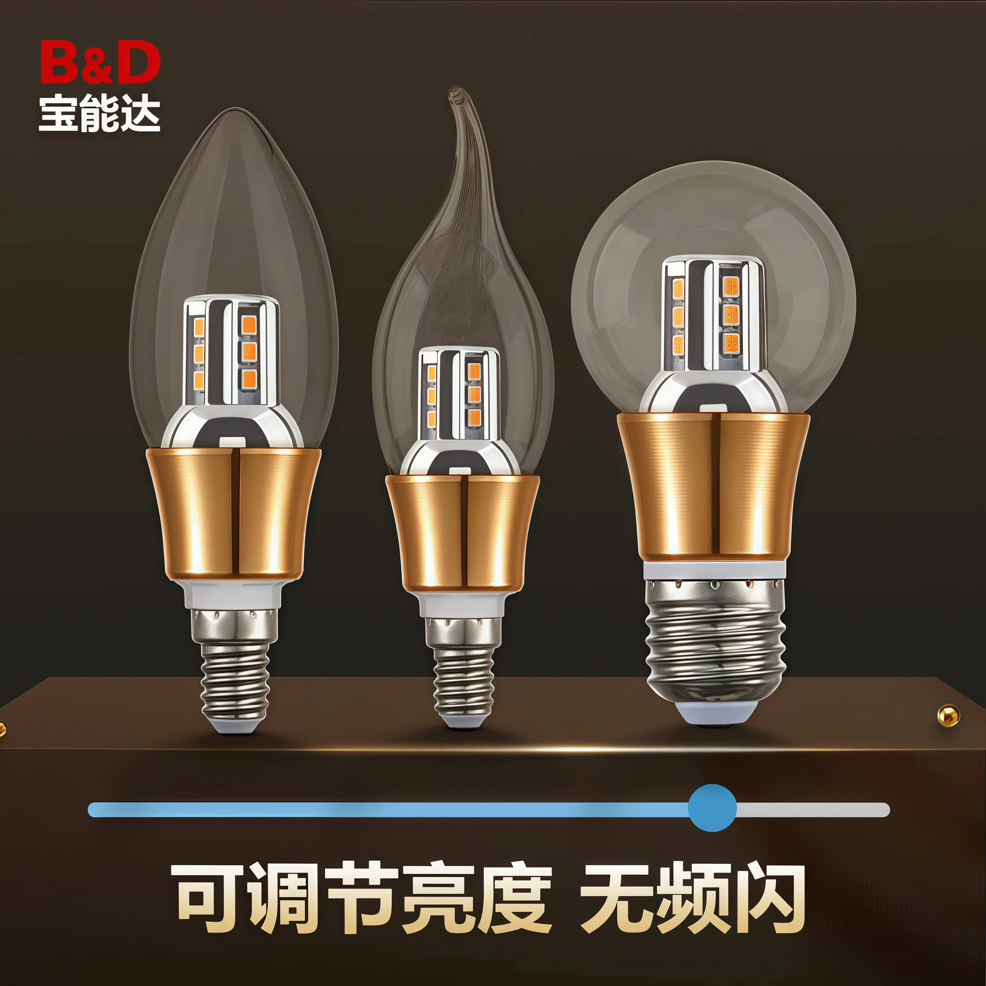 宝能达LED可控硅智能开关可调光蜡烛灯E14 E17 E12