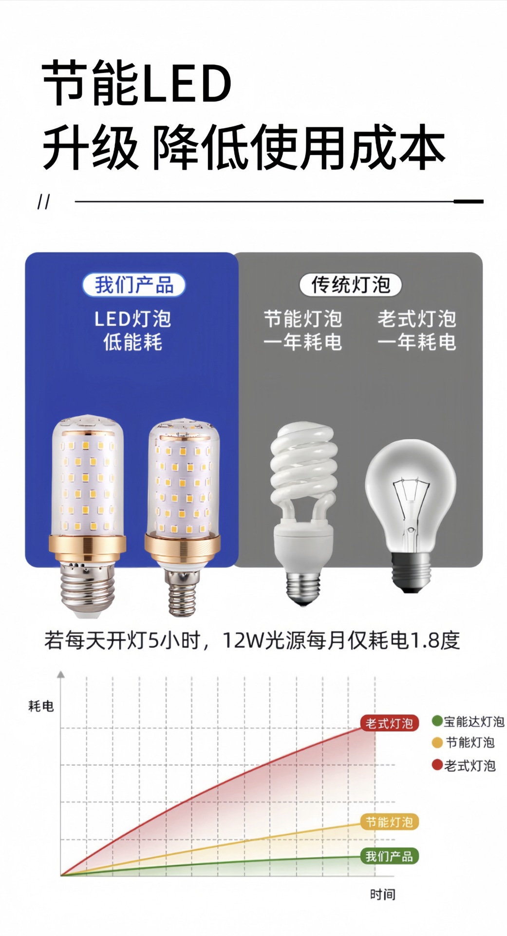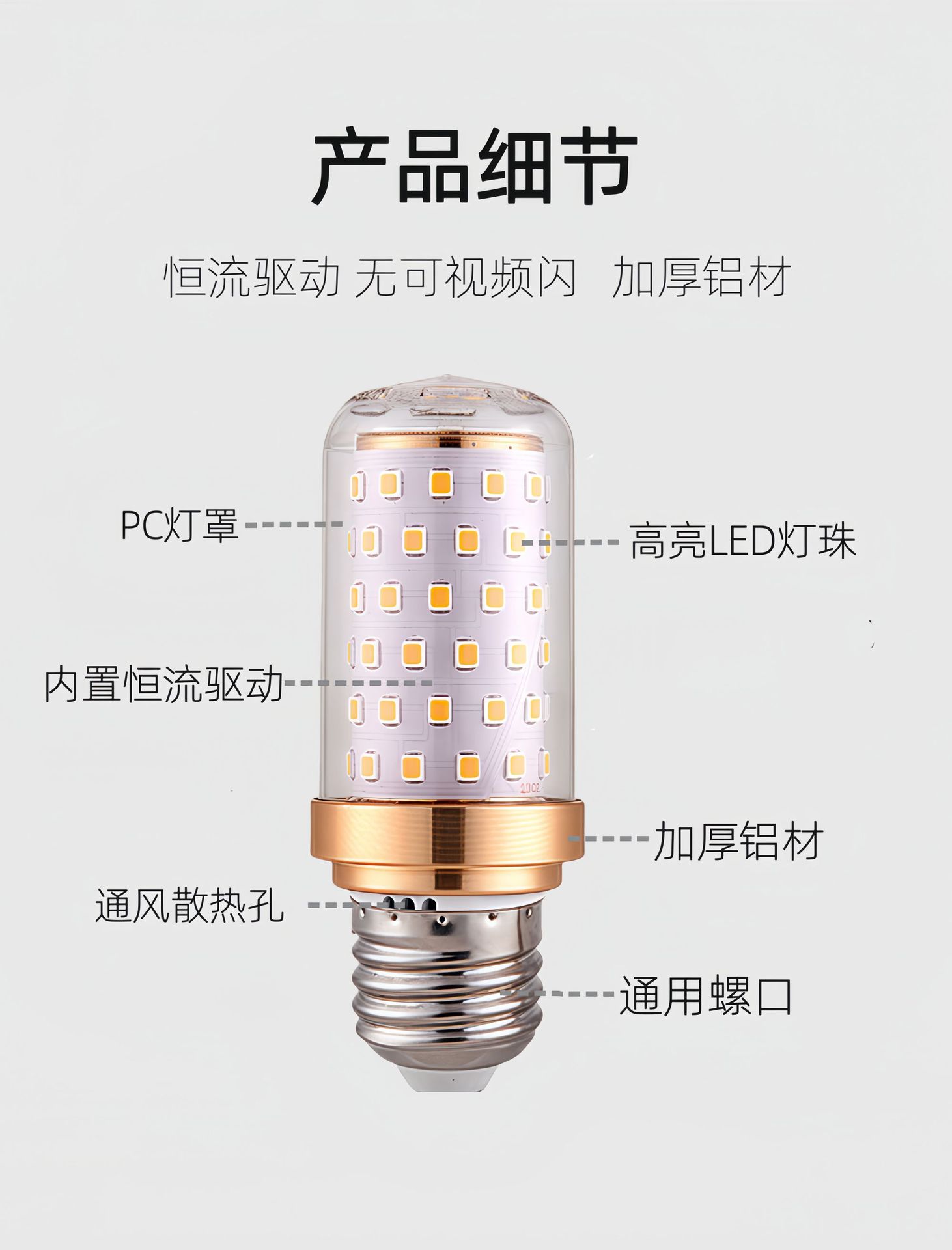 宝能达超亮led灯泡e27E14小螺口三色变光12w玉米灯节