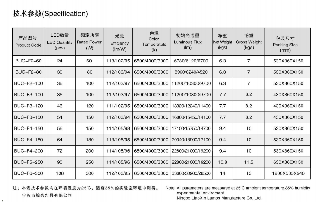 燎兴 BUC-F2/F3/F4/F5/F6 投光灯