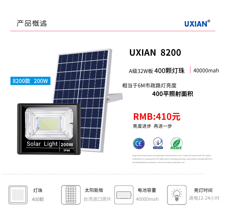 高亮户外防水太阳能泛光灯