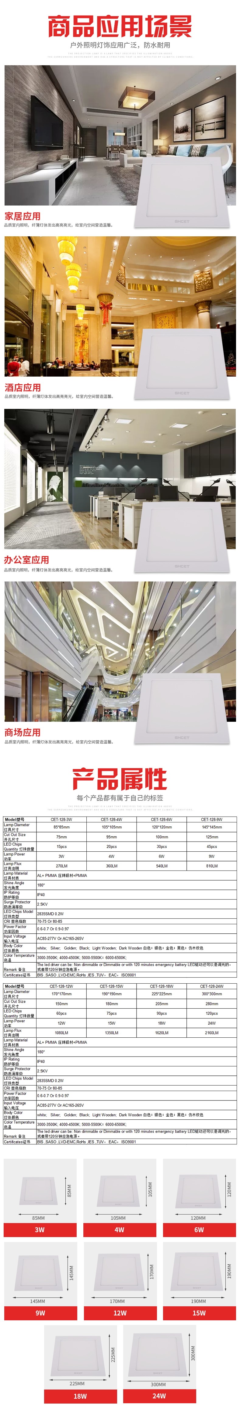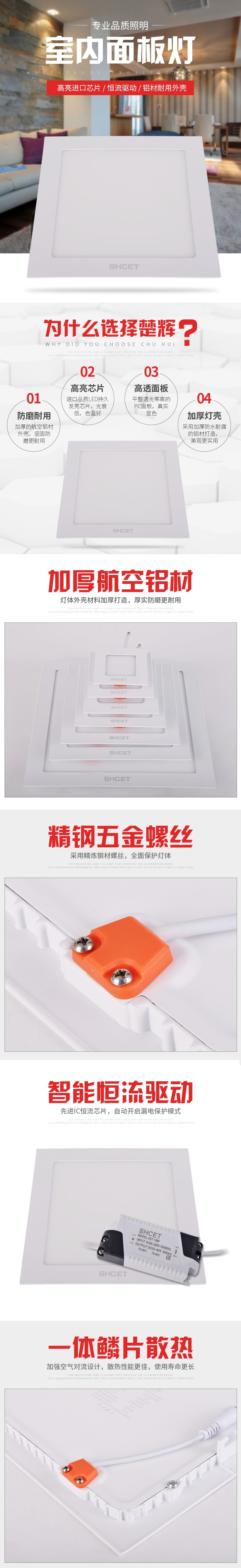 现代集成吊顶圆形暗装面板灯3/4/6/9/12/15家居酒店办公室平板灯
