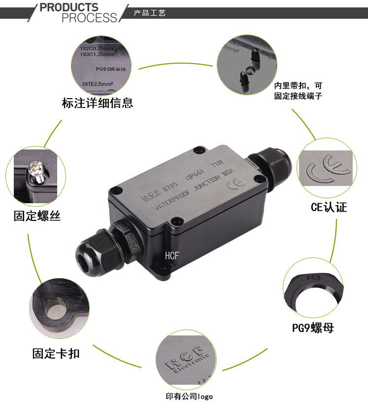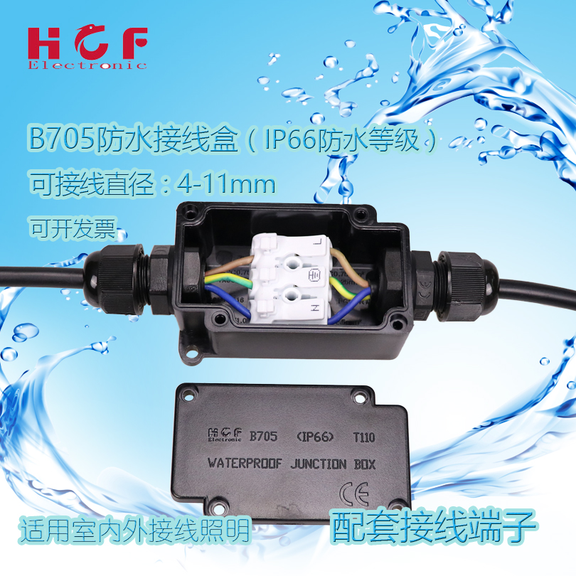 汇诚丰 B705防水接线盒 配接线端子IP66防水等级、防尘防晒 适用室内外户外照明灯具连接盒