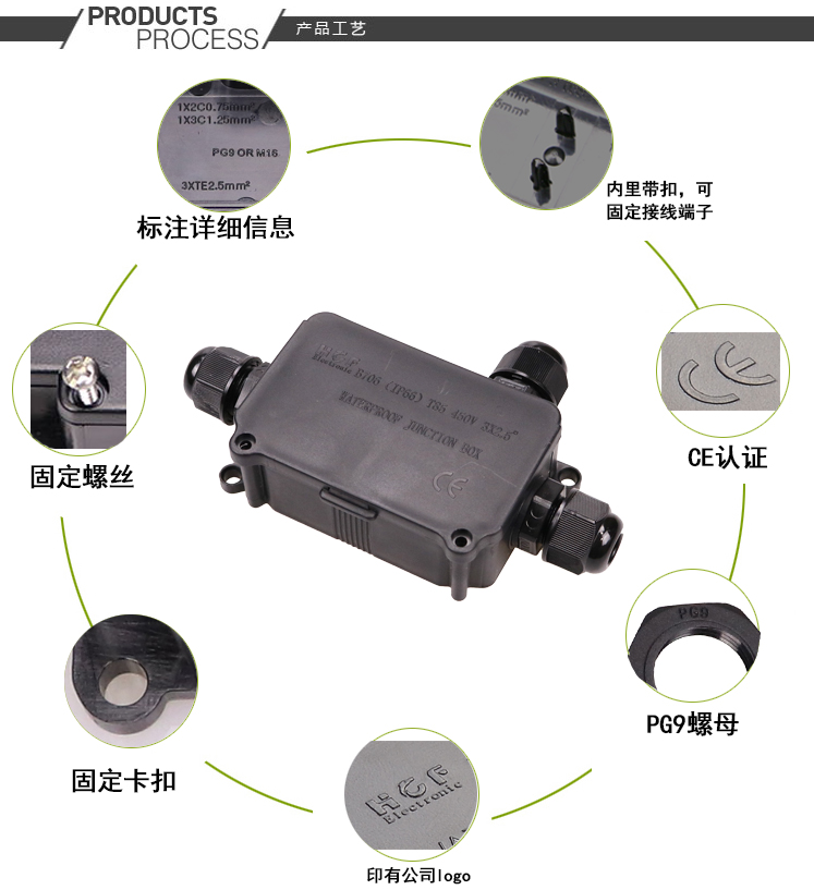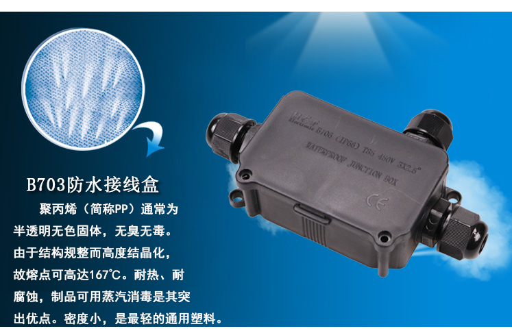 B703防水接线盒,可配套T04/T06/P02系列接线端子,防水防尘防晒,IP66防水等级