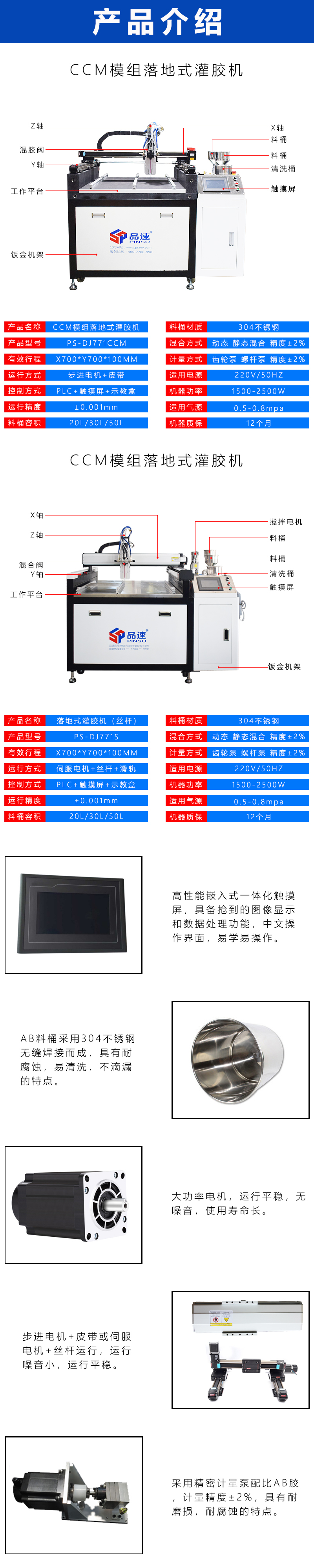 深圳市品速科技有限公司是一家集设计、生产、销售、安装调试、维护为一体的自动化新型企业。公司成立于2012年,位于广东省深圳市。先后在中山、温州、江苏、河北等地设立办事处,并跟俄罗斯、日本、土耳其、印度、越南、伊朗等20多个国家及地区建立合作及代理。品速科技掌握液体控制的核心技术,专业研发和生产面向LED、贴纸、电子、汽车、太阳能、家居、饰品、光伏等行业的手动、半自动、全自动、非标定制等一系列的自动化设备;目前公司主营项目有全自动点胶机、全自动灌胶机、CCD视觉点胶机、螺丝机、焊锡机、非标点胶灌胶自动线、非标自动化流体控制等先进的自动化设备。品速科技从业人员具备丰富的行业经验能为客户提供整体灌胶解决方案,及国外建立合作伙伴,设备全球联保终生维护,24小时客服热线,不断深入创新和完善,为客户提供最优质的产品及服务;公司拥有专业研发团队不断创新致力于成为国际化品牌;几年以来,迅速发展成为一家拥有一支专业从事自动化设计、生产和销售的精英团队。技术力量雄厚,检测手段先进,为满足市场需求我们精益求精,不断进取,在市场上赢得了广大用户的一致好评。