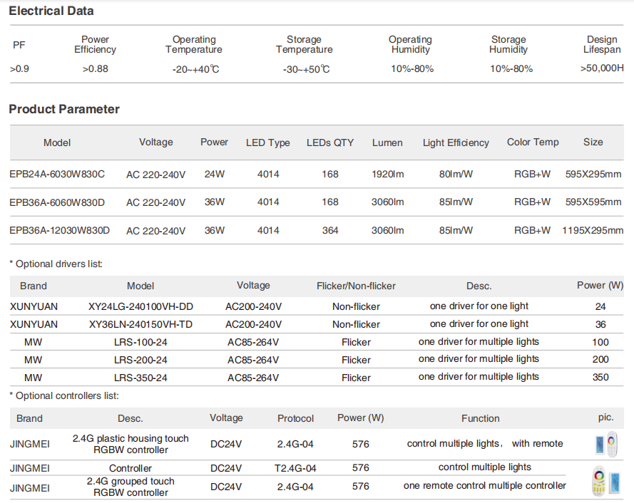 • 灯具尺寸 600*300mm、600*600mm、1200*300mm