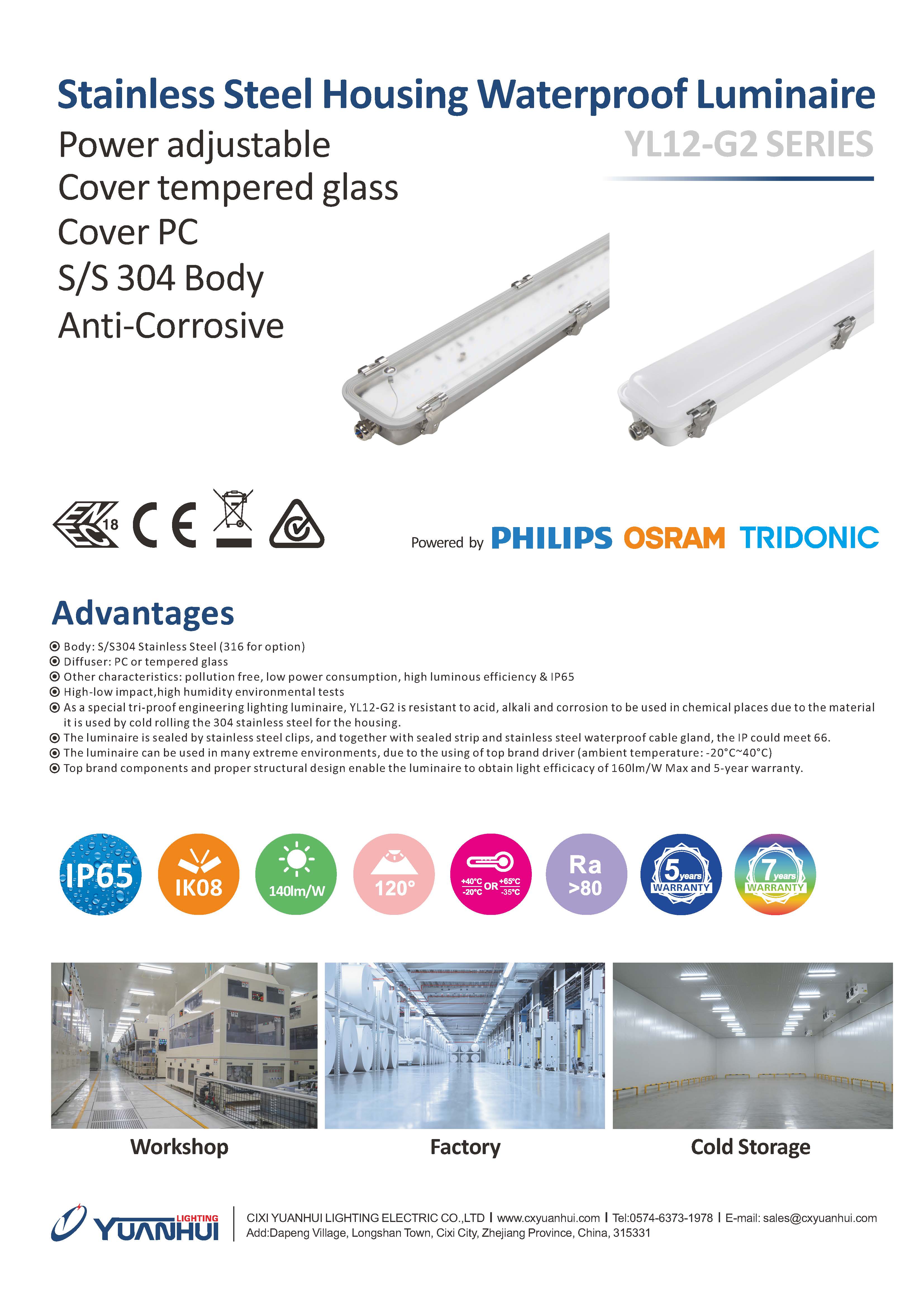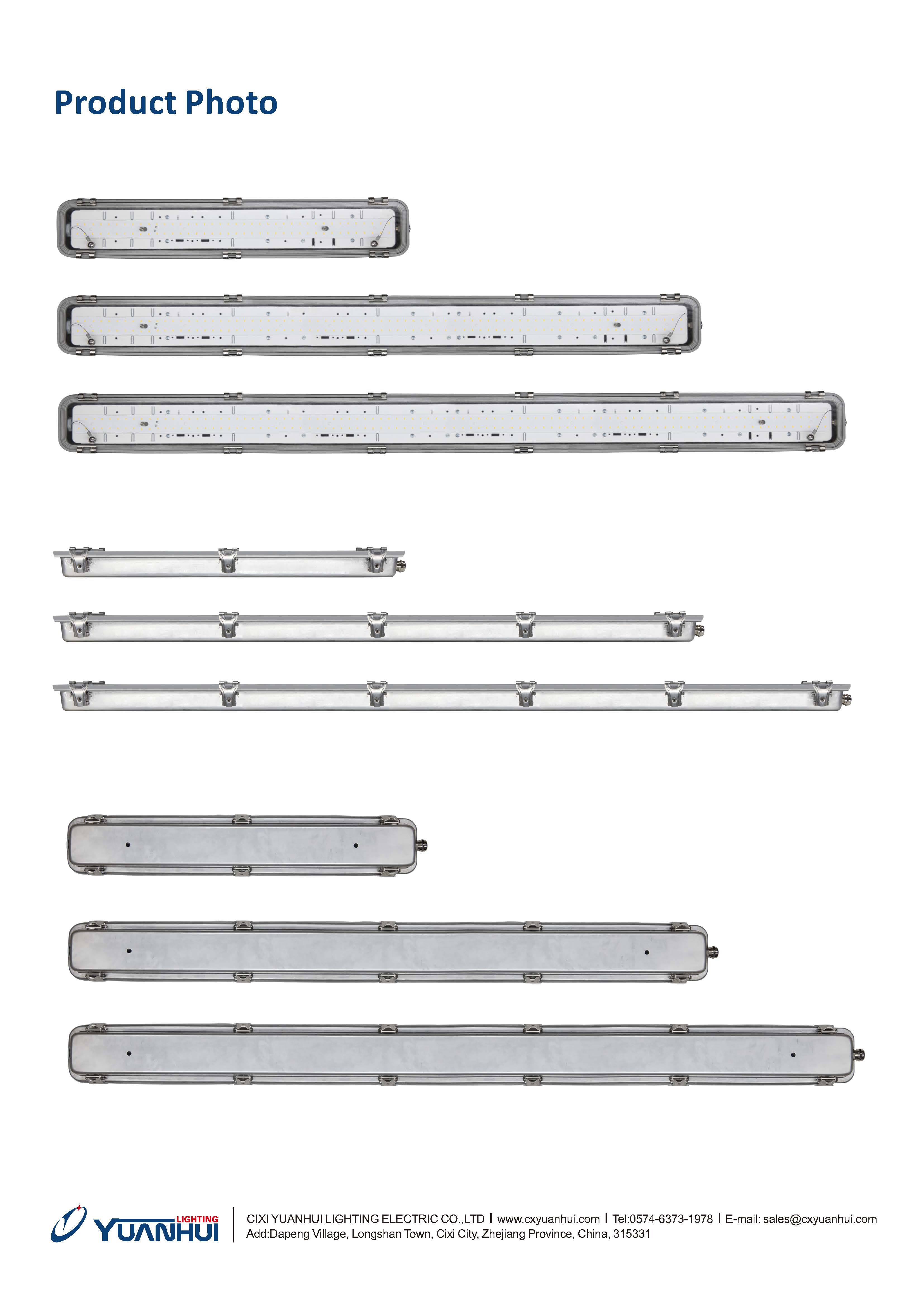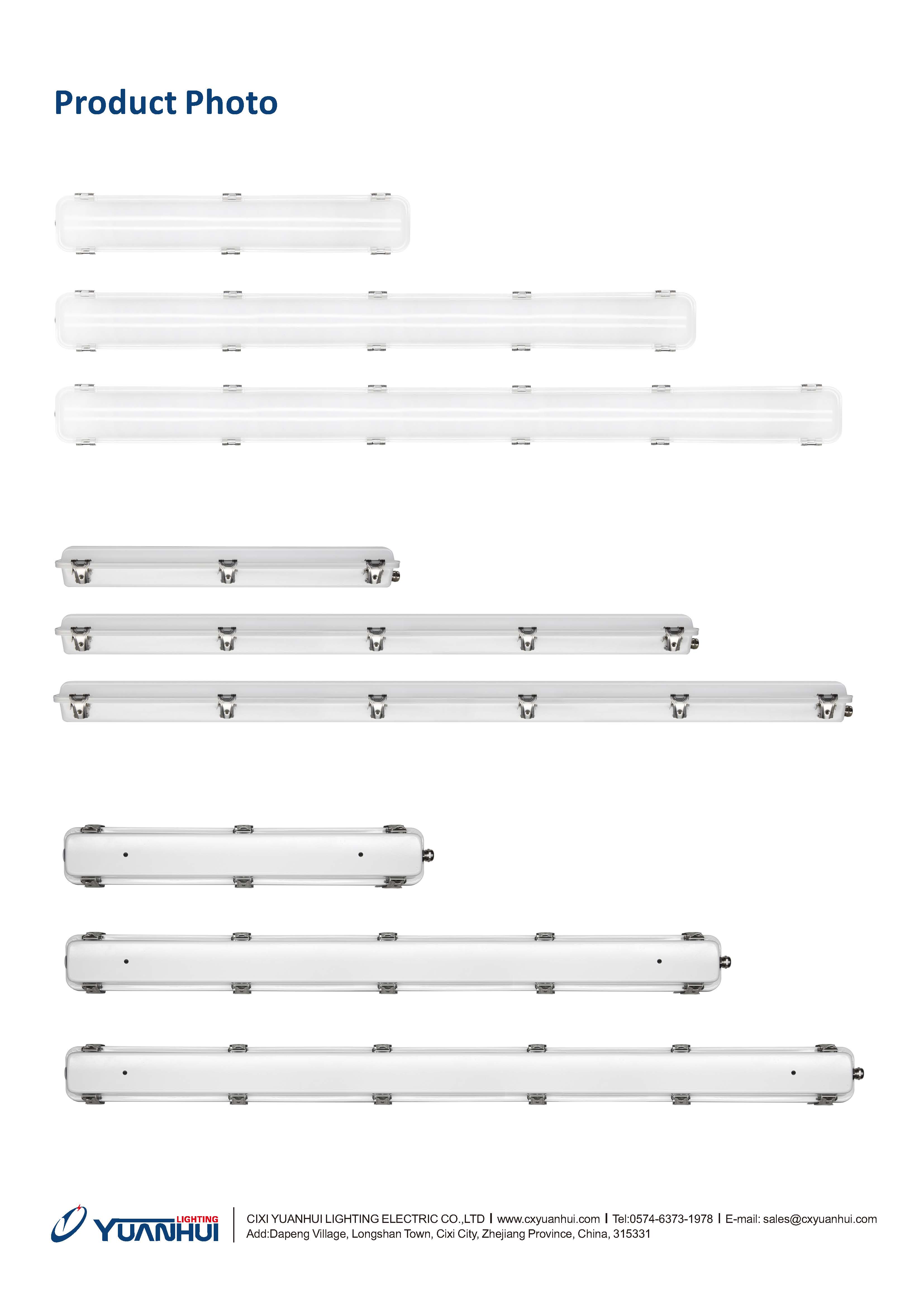 慈溪市远辉照明电器有限公司位于浙江省宁波慈溪市三北镇工业园区,厂房占地面积16000平方米。公司距宁波市中心和宁波机场40分钟车程,距宁波港45分钟,距上海2小时车程,交通十分便捷。公司是一家专业生产,开发,销售IP65三防荧光灯IP65 LED户外灯具的照明企业,一直以来公司都本着质量第一,信誉至上的经营原则,在业界树立了良好的信誉和口碑。公司拥有一个充满激情,富有活力的团队;花园式的办公环境,先进的生产设备,装配流水线以及成熟的生产技术,使产品年生产能力达300万套。公司已经通过ISO9001,UL,CE,GS,BS,ROUS和CCC等认证。公司经营的产品款式齐全,质量上乘,价格实惠,配送及时,服务优质。不断探索并适应市场需要,使得产品远销欧洲、澳洲、中东、亚洲、非洲、北美洲、南美洲等十几个国家和地区,并深受广大国内外客户的青睐和好评。三防荧光灯IP65(T5 T8)系列产品系列以及IP65 LED产品系列适用于浴室、桑拿房、厨房、医院、食堂、部队营房、面包房、各类物资仓库和生产车间、装配车间等室内场所和游泳池、广场、公园、野营、煤矿、过道、隧道、地铁、地下停车场、桥下、河岸和码头等室外要求防潮、防水、防尘的区域和场所。三防荧光灯支架灯底由ABS或PC塑造,灯罩由PS、PMMA和PC塑造。客户可根据市场需求,自行选择ABS/PS、ABS/PMMA、ABS/PC或PC/PC等组合的产品。公司将按照客户要求,将竭诚提供设计美观、科学,质量上乘的产品。 远辉公司持续改进和创新,致力开发、铸就了远辉独具制胜的核心竞争力!追求卓越品质,创造舒适生活,让远辉走向世界是我们的最终目标。真诚希望与您合作,携手共创光明未来! 企业使命:通过不断努力与创新,铸造远辉品牌,让远辉走向世界! 企业文化:严谨不失活跃,规范不忘创新! 经营目标:成为三防荧光灯的行业专家!经营理念:在最短的交期内,为客户提供最满意的产品!经营方针:以管理促效益,以质量求生存,以创新求发展,创国际一流品牌!