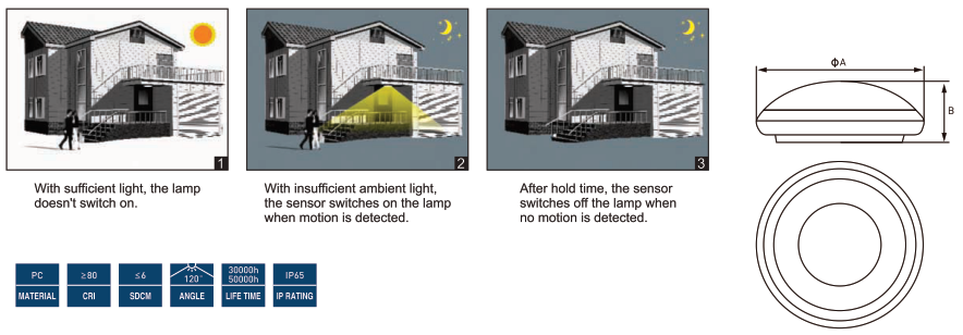 高品质的PC罩和PC / ABS底座,提供IP65防潮,防尘,防腐蚀和IK08防撞等级;