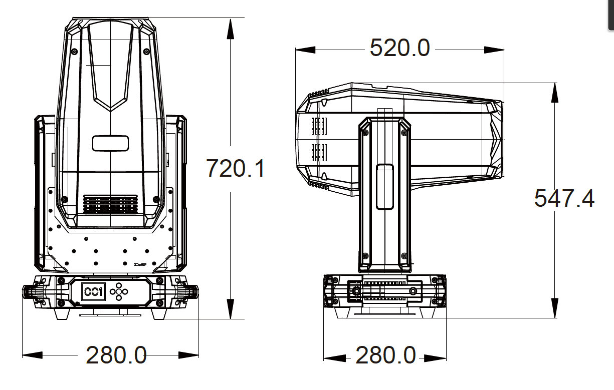 产品尺寸: 280(D)*400(W)*720.1(H)mm