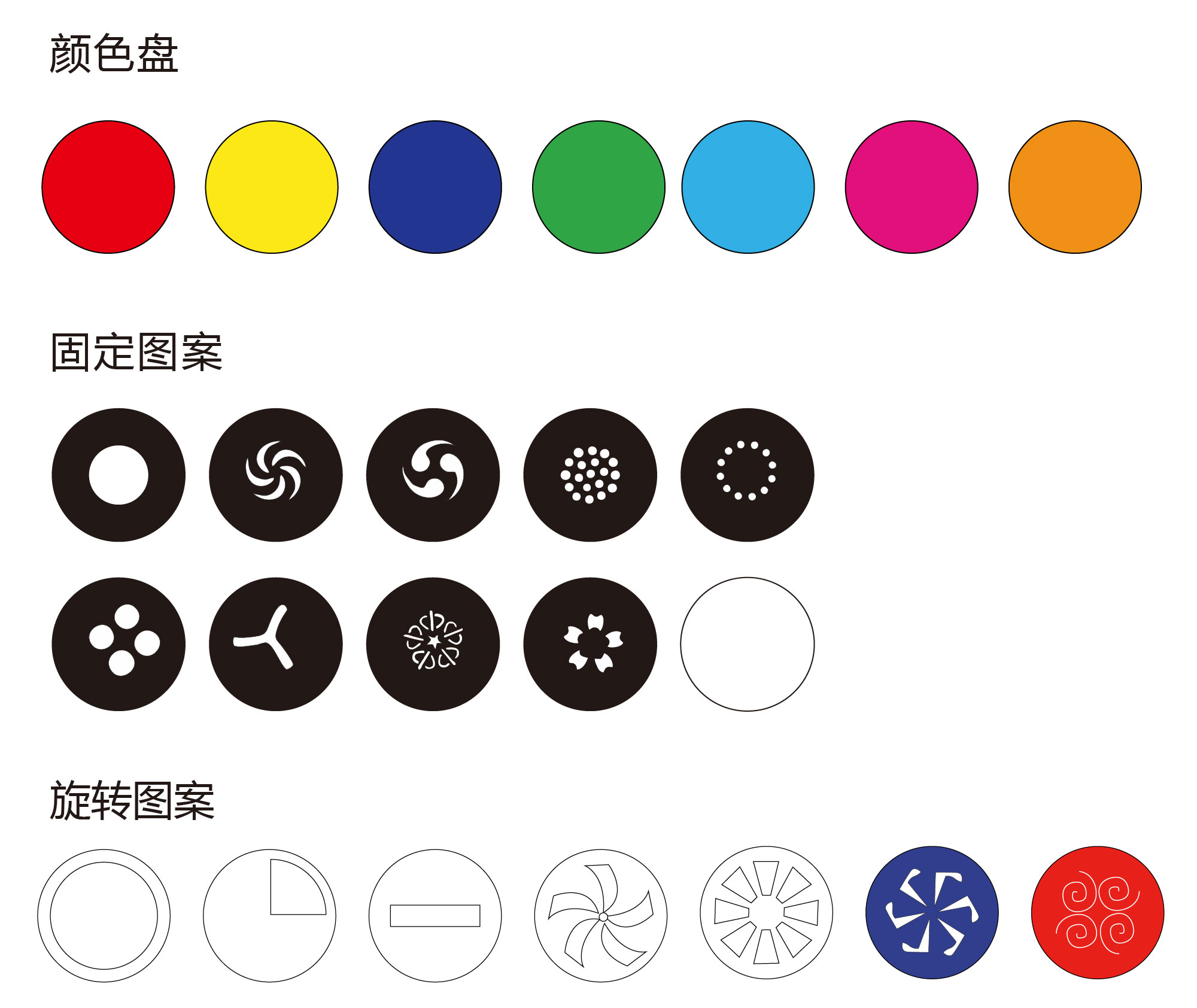 固定图案盘:7个固定图案片+白光,带图案抖动功能