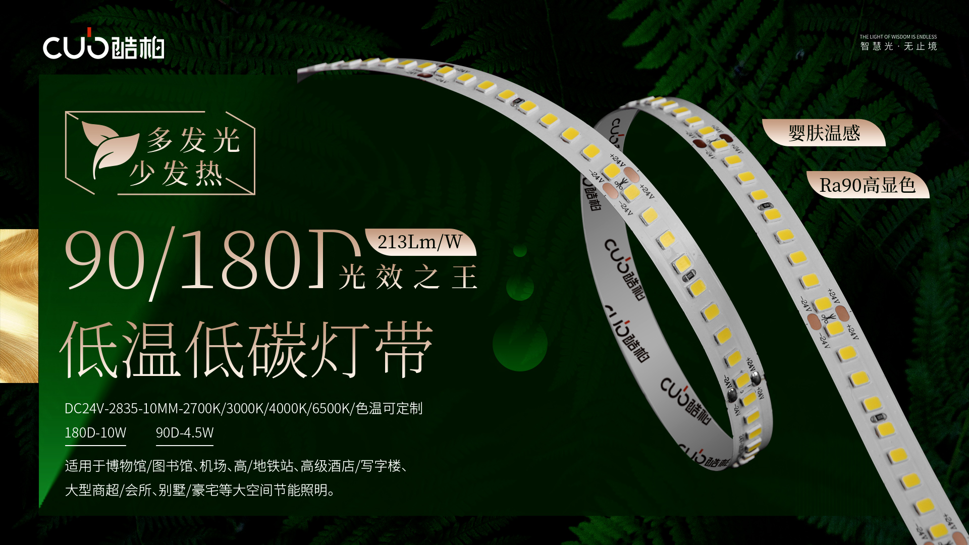 90灯/180灯光效之王213Lm/W-低温低碳灯带 | 多发光,少发热; A级能效;温升低;