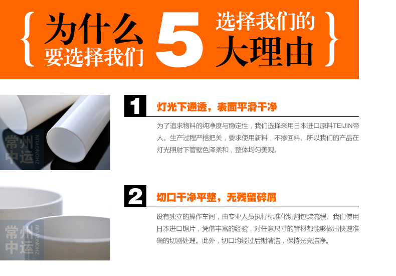 常州中运电器有限公司坐落于江苏省常州市武进经济开发区内,占地面积20000平方米。公司专业从事挤出/注塑行业,主营亚克力、PC、PETG、PVC等材料制作而成的管材、型材、异型材。产品广泛应用于照明领域,也可为各灯具企业配套:家用照明、办公室照明、户外景观照明、停车场照明、广告灯箱照明、超市、学校、医院等商业场所照明、火车、地铁等交通轨道照明。公司设有技术研发部门,协助客户开发设计对工艺技术有不同要求的产品。我们的目标是为客户创造高品质及有价值的产品。公司严格执行ISO9001质量认证体系,产品拥有ROHS、GLOW-WIRE、BALL PRESSURE等材料测试认证证书,迄今为止,我们已生产了管材产品200余种,总量超过5,000,000米;型材产品500多套模具,总量超过3,500,000米,远销美国、欧洲、日本等不同国家及地区。我们的优势是:10条生产线,24小时连续运行生产,CAD/CAM 提供试模样品独立的模具制造部门 试运行生产能力,自行材料开发,自行配色,质检专员24小时对产品进行检验,为客户的新品开发提供技术支持