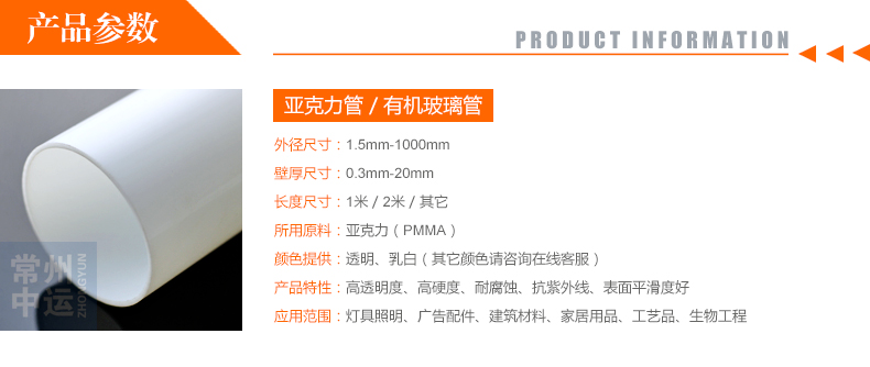 中运 亚克力管 PMMA 有机玻璃 乳白管