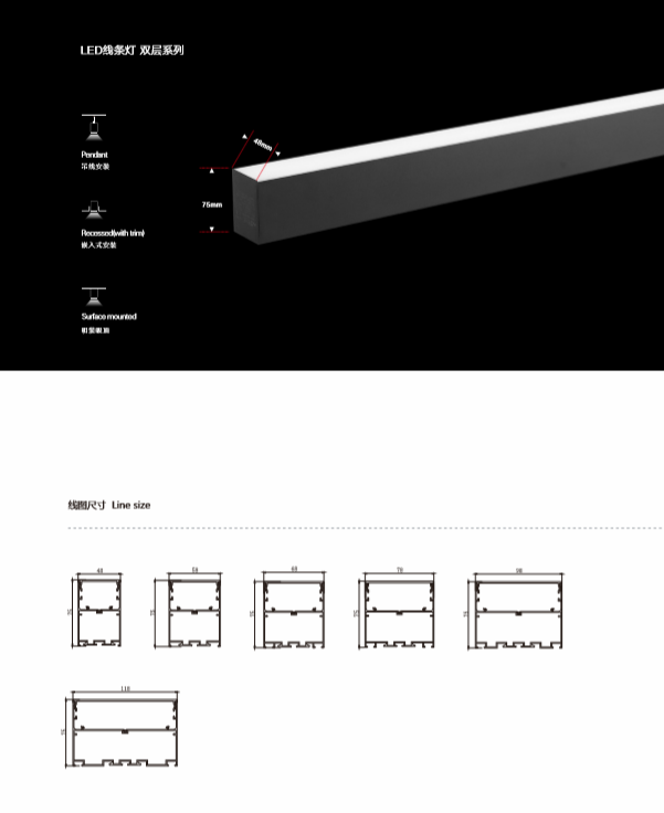 关于伟立森中山市线型照明科技有限公司是一家专业生产中高档办公照明的企业,公司拥有专业从事设计研发队伍,竭力从实际出 发,稳扎稳打,不断推陈出新、产品品质上乘、品种齐全,外形美观,价格实惠,产品畅销全国各地,公司以市场为导 向,科技为保障、坚持以质量求生存,为广大用户提供更加周到服务。主要产品以时尚简约风格的吊线灯,吸顶灯等照明办公产品为主,所有的研发,生产全部围绕着塑造舒适,灵性的办公 照明空间环境展开,利用专业的设计理念和照明原理,能够有效的消除刺目的眩光和电脑屏幕的反光,办求能够消除或 减少因办公照明引起的各种健康综合症,并有效提升办公室人员的工作效率。经过十多年的灯饰铝材生产经验,拥有年 产达10000吨以上的生产能力,同时在05年又看到了照明行业的巨大发展潜力,先后在06年开进入办公照明的领域, 开创了以生产日光灯、系统照明、办公照明、壁灯、镜画灯、现代灯为主要产品,为客人解决专业、节能环保、舒适的 更优化系统照明解决方案,优化照明空间。在强大的铝材生产和强大的铝材生产技术的支持下,伟立森照明每年屡屡创下新佳绩。深受广大客商朋友的认同。在发 展渠道打下坚实的基础、产品销往澳洲、韩国、新加波、香港、俄罗斯、等欧盟国而在当今LED的发展潜力之巨大,我 公司又继而有引引多台德国的SMT全自动数码贴片机,生产以(伟立森)牌的LED各大产品。以生产优质的LED系列产 品,包括有LED天花灯、筒灯、投光灯、T5\T8日光灯管。公司产品已经获得CQC国家质量认证,CE欧 盟质量体系认 证,未来公司将加快发展速度。达到国际更高的生产、研发、管理的水平。在新产品的研发方面,我公司将加大产品在知识产权的投入,以保障各界使用和购买我公司产品的信心,以求达到共发 展,达双赢!PAGE 01 02权威荣誉认证 Authoritative honor certification线型照明-个性化非标定制厂家 Office lighting-Personalized non-standard customized manufacturers