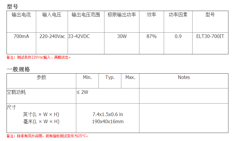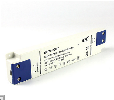ELT30-XXXIT系列超薄LED驱动电源输入电压范围为220-240Vac,可提供 700mA恒流输出,在 输出功率30W时可提供极限42V输出电压。本系列LED驱动电源为高效率高可靠性设计。