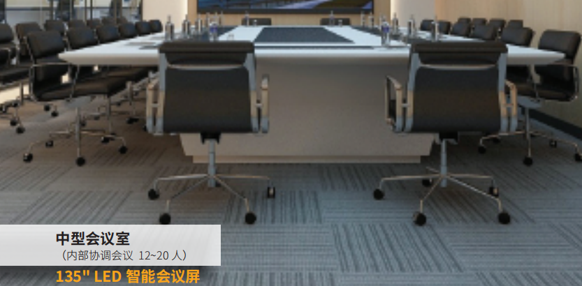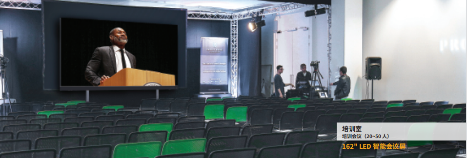 一屏多显,智能分屏,支持多个窗口同框,全 场景覆盖,随时随地可加入会议。LED智能会议 屏打破了传统LCD屏幕无法实现超大尺寸,高亮 低灰使用寿命有限的壁垒,兼具会议室使用的 全部功能,融合音视频信号处理,一台设备即 可实现全场景、全功能,开启会议室解决方案 新时代。