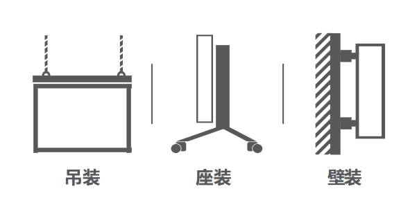 无需二次装修,无需后维护通道,无需钢结构,易于现场施工,安装方便快捷,使用脚架时,底部配备万向轮,可轻松移动。支持吊装、挂墙等多种安装方式,以兼容不同的使用场景。