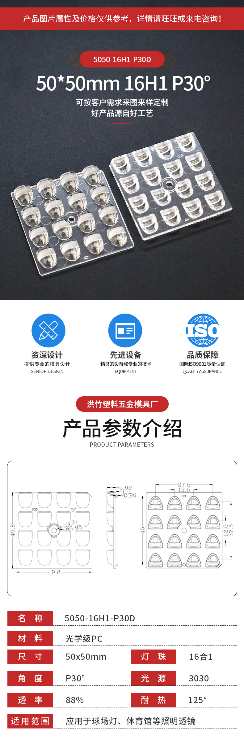 洪竹亚克力led光学灯具透镜16合一30度PC街灯球场灯光学
