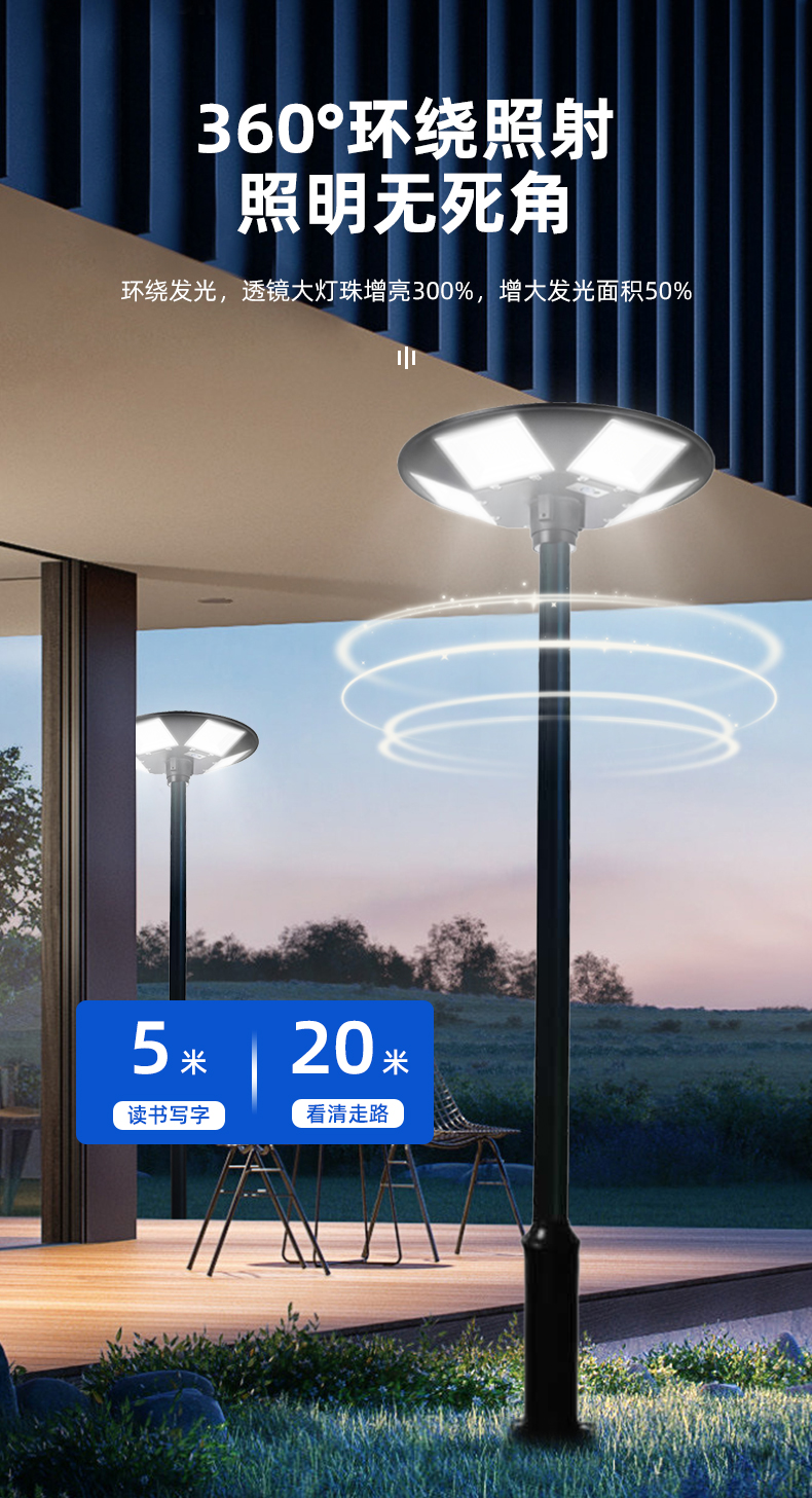 太阳能户外灯庭院灯景观灯家用别墅花园露台移动飞碟感应照明路灯