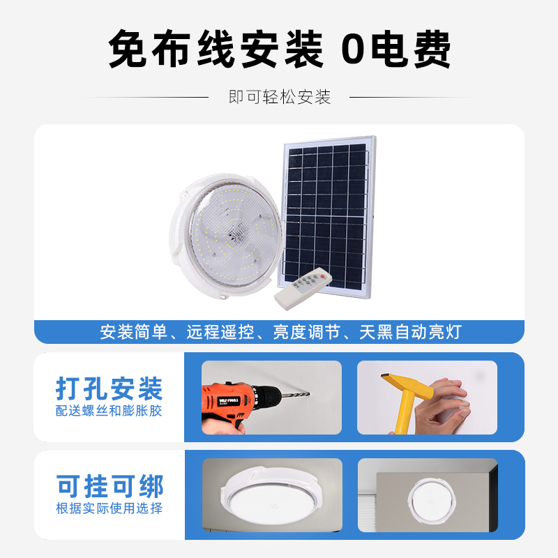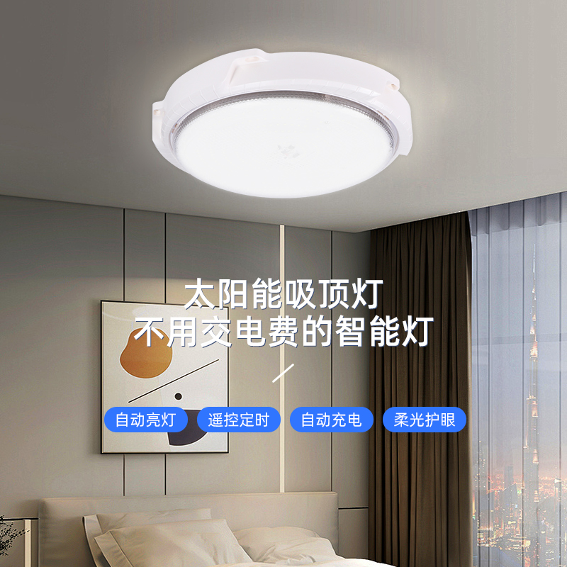 太阳能吸顶灯家用客厅阳台灯现代简约卧室太阳能照明灯LED