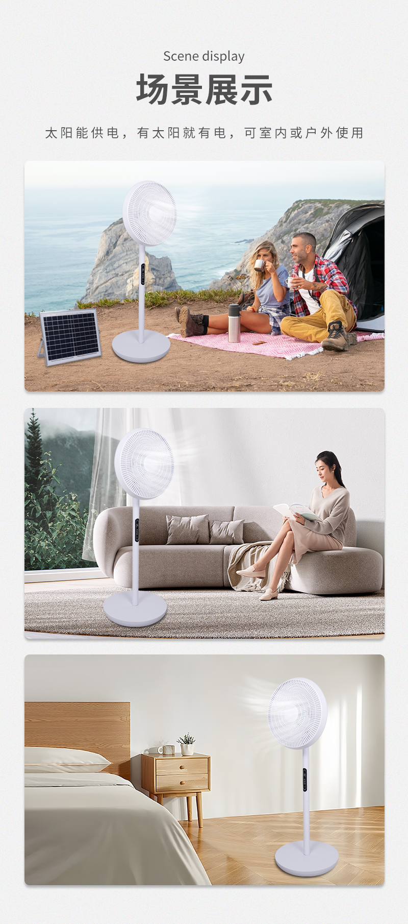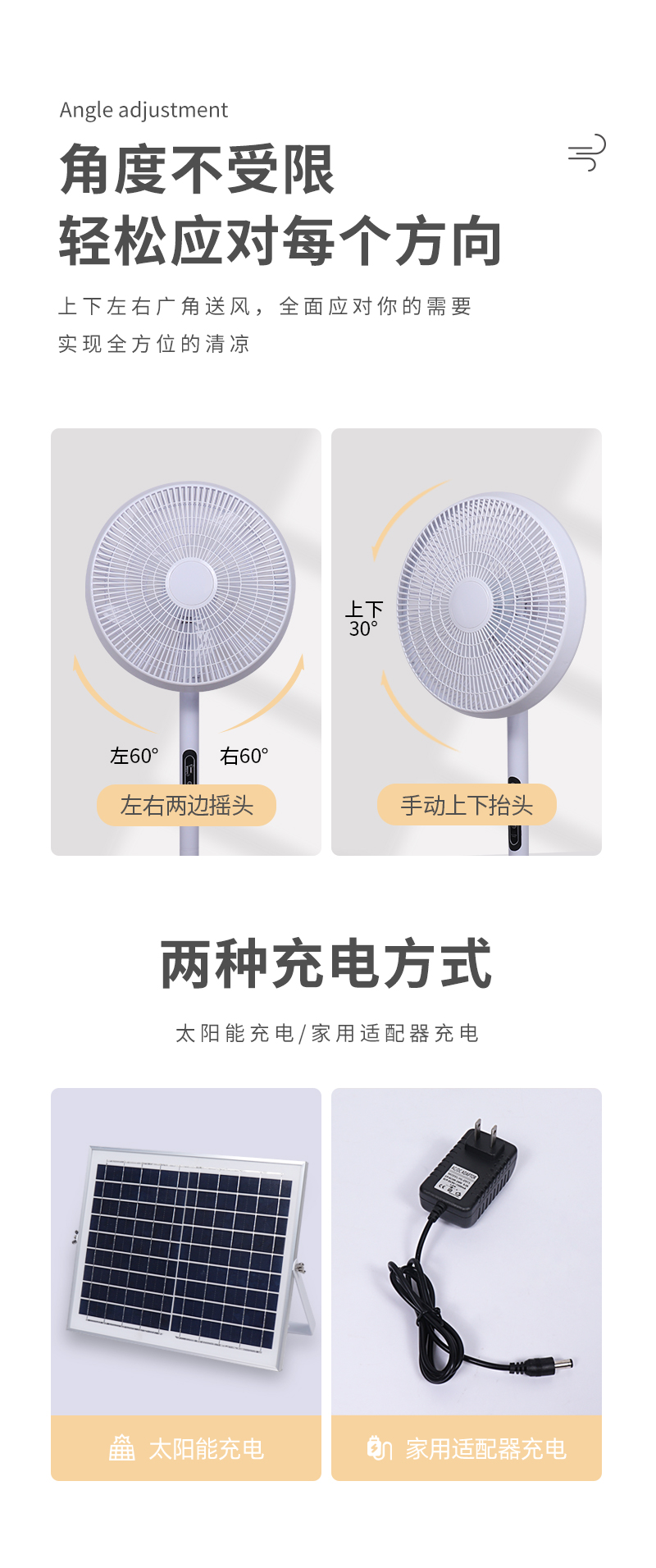 太阳能充电风扇大风力户外停电应急落地风扇超长续航遥控静