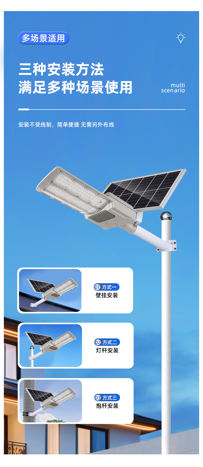 太阳能路灯户外农村院子照明分体式三面广角防水大功率门口
