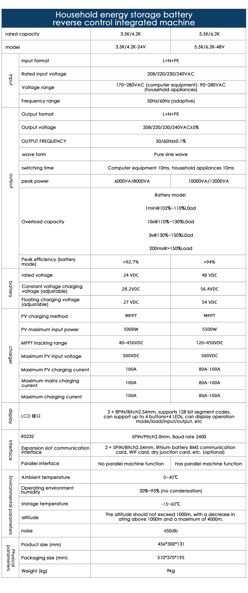 3.5KW4.2KW5.5KW6.2KW高频壁储能