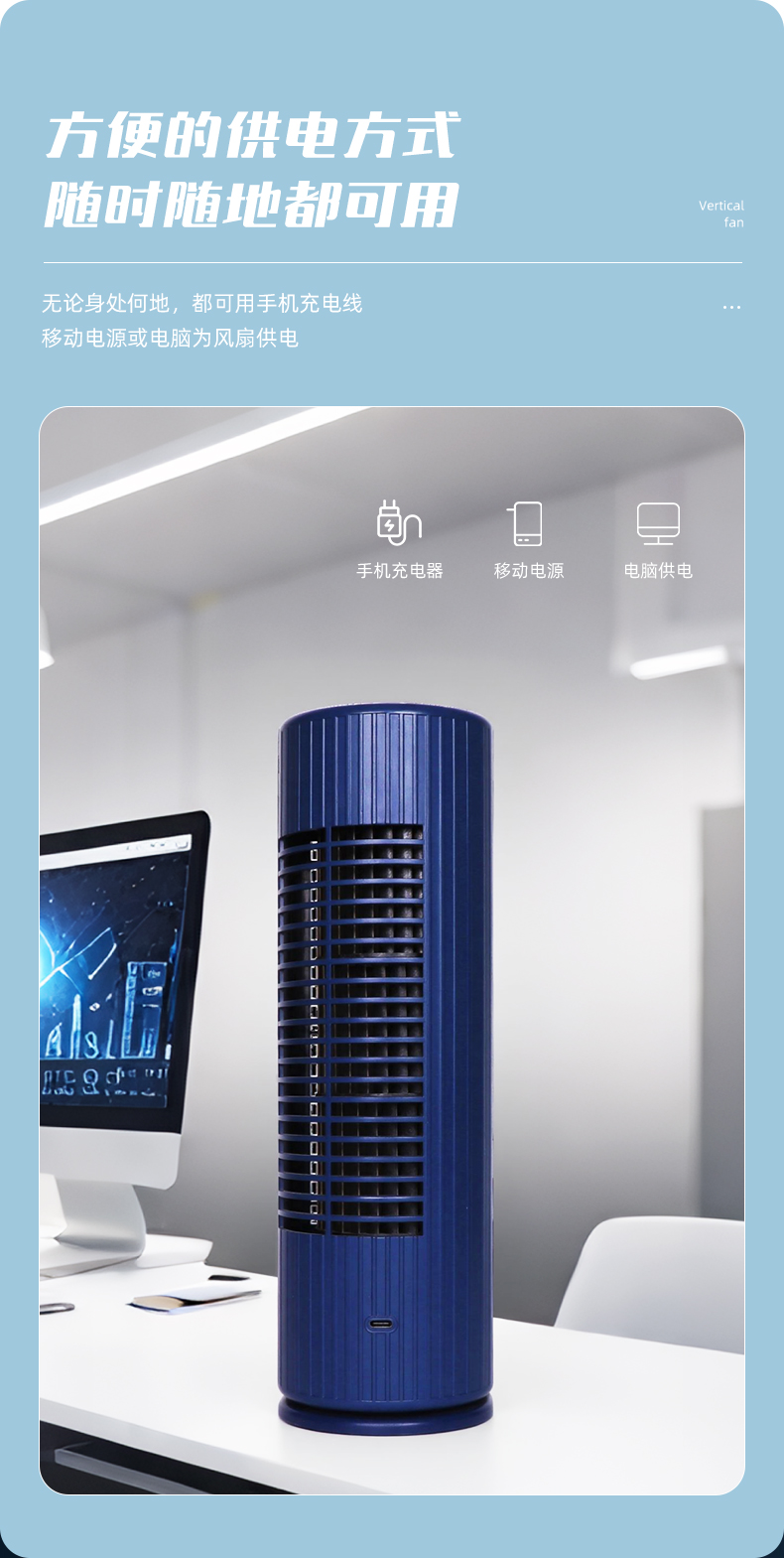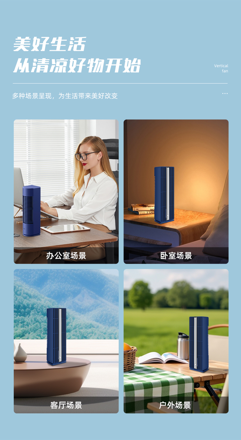 塔式桌面无叶台式风扇自动摇头小型三档学生静音办公室电风扇