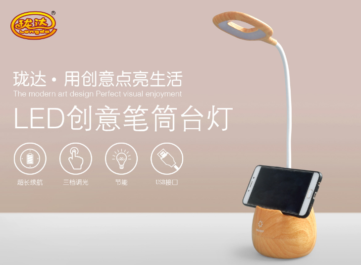新品热销 护眼台灯LED照明阅读学生学习创意笔筒木纹台灯