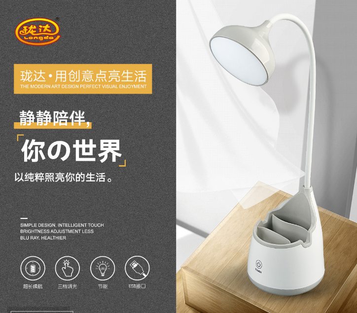 LED护眼台灯 简约大方实用创意台灯学生 床头灯充电