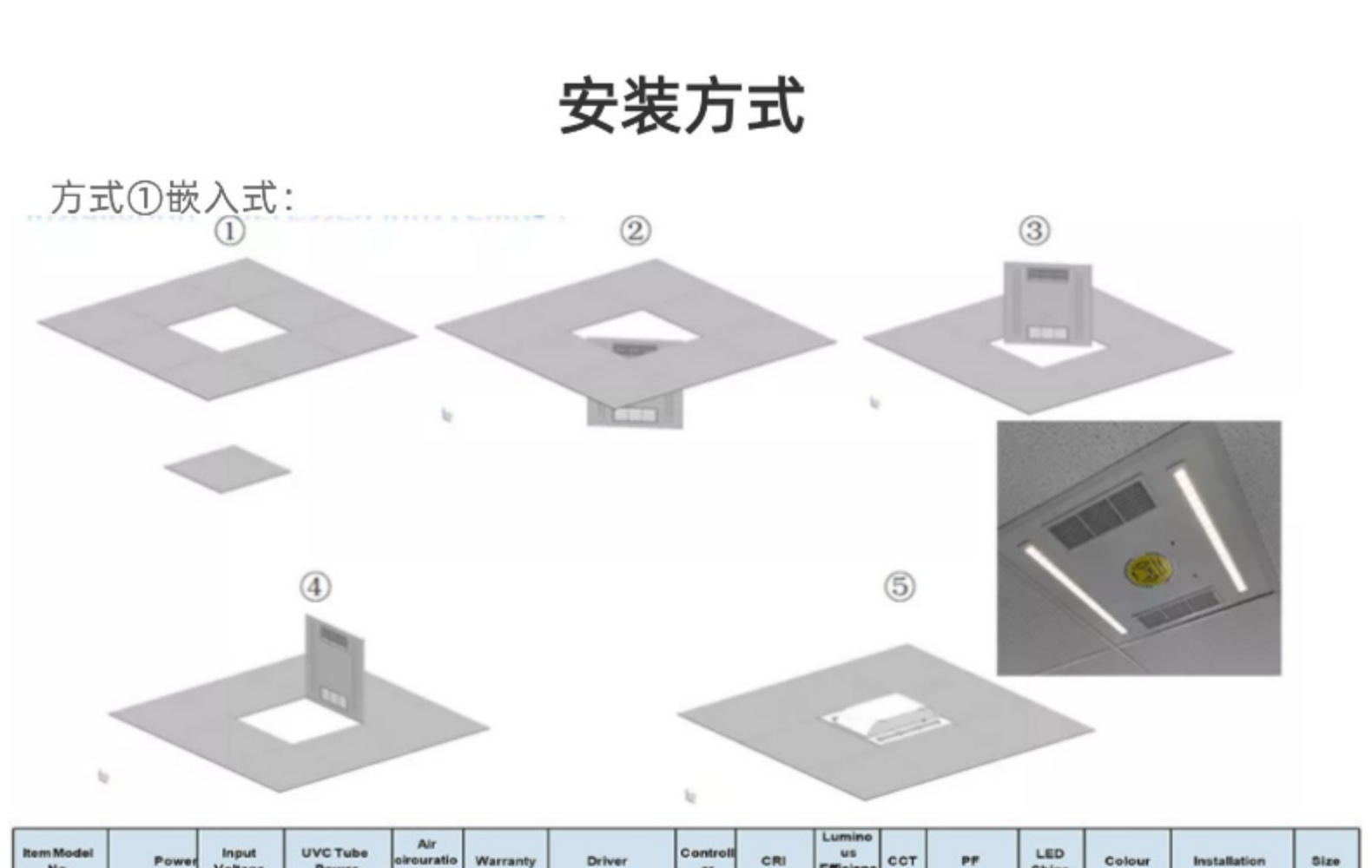 • 安装方式 吸顶式、天花嵌入式、支架式、悬吊式、明装