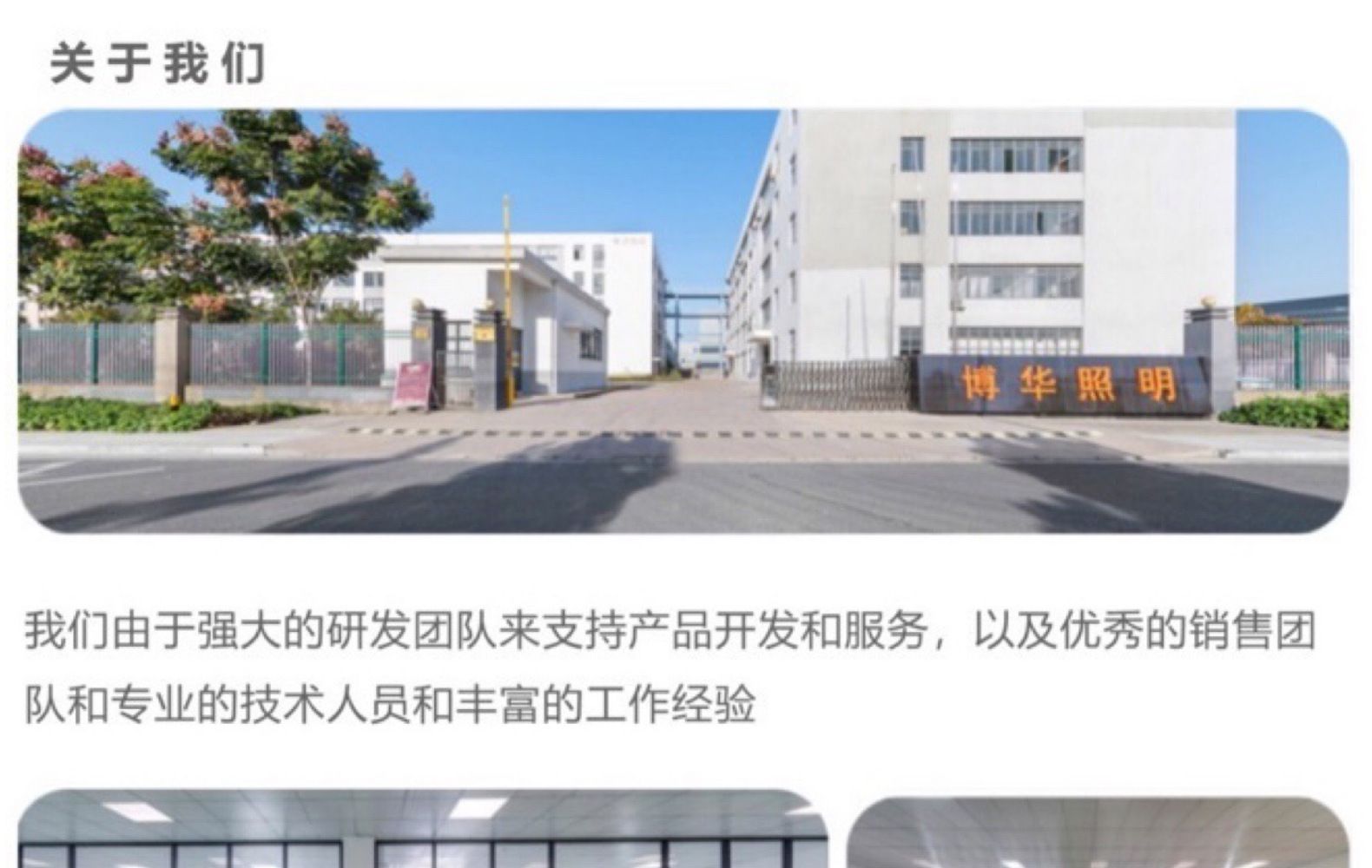 海宁博华照明电器有限公司成立于2015年,位于海宁高端、国际化、个性化、多功能的泛半导体产业园,拥有18000平的生产面积。是一家集研发、生产、销售、照明设计、工程项目为一体的科技型企业。 致力于智能、节能、高效、绿色环保和健康照明的研发,通过自主研发、合作开发、客户定制等方式推出新产品。 我们的文化管理理念是:成就客户、艰苦奋斗、团队协作、诚信、开放、共赢。