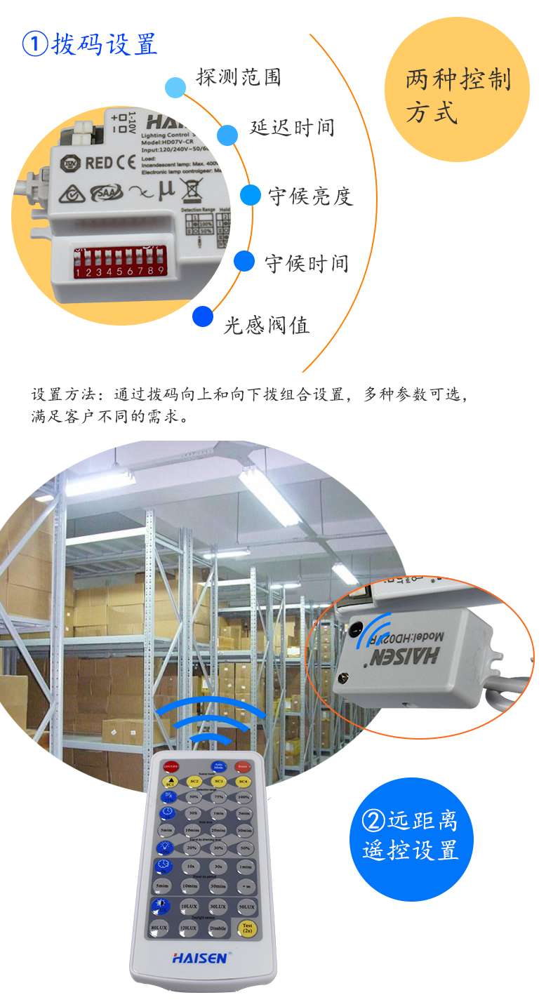 光感阀值设置:2Lux/10Lux/50Lux/不受控