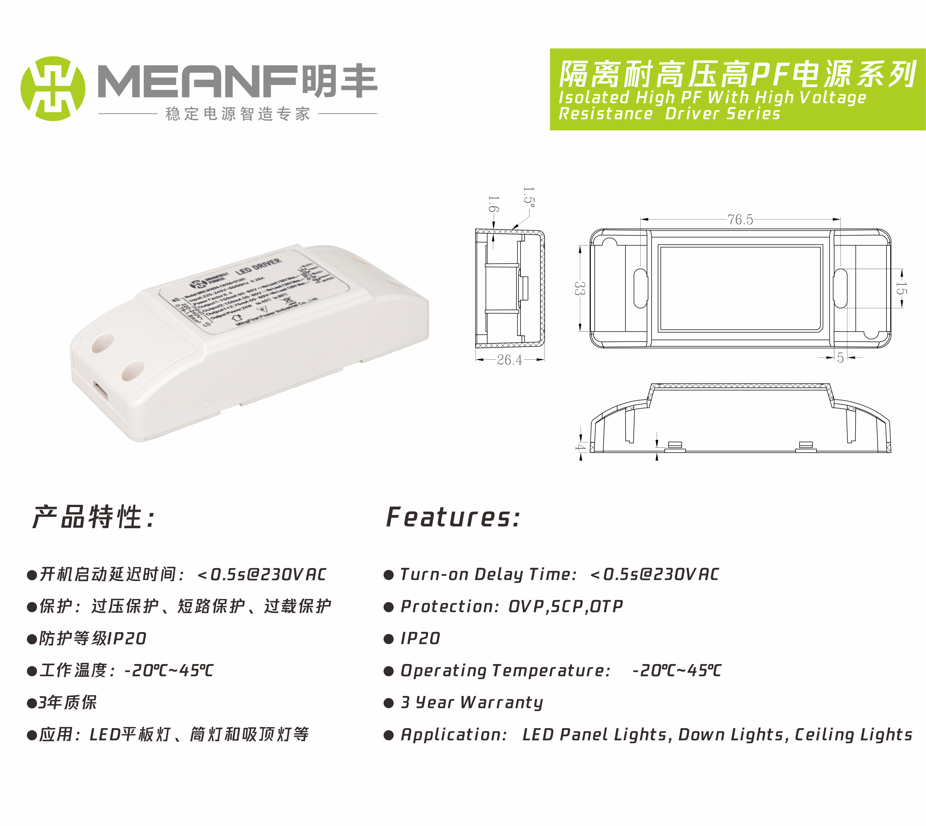 | 8-18W | MIHN2015YB-C03001 | 176-305V | 0.9 | 26-50V | 300mA | 85% | 105*42*23.5mm | BIS |