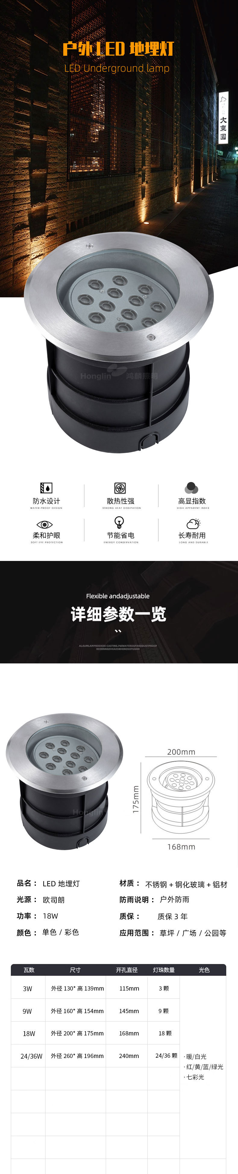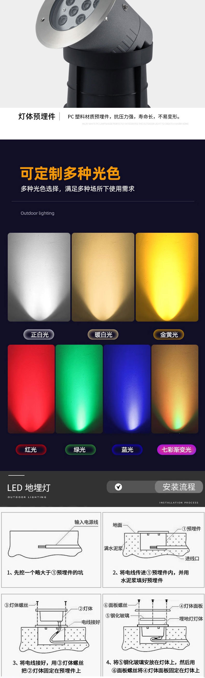 LED防眩光地埋灯18W可调嵌入式地灯户外防水庭院别墅花园