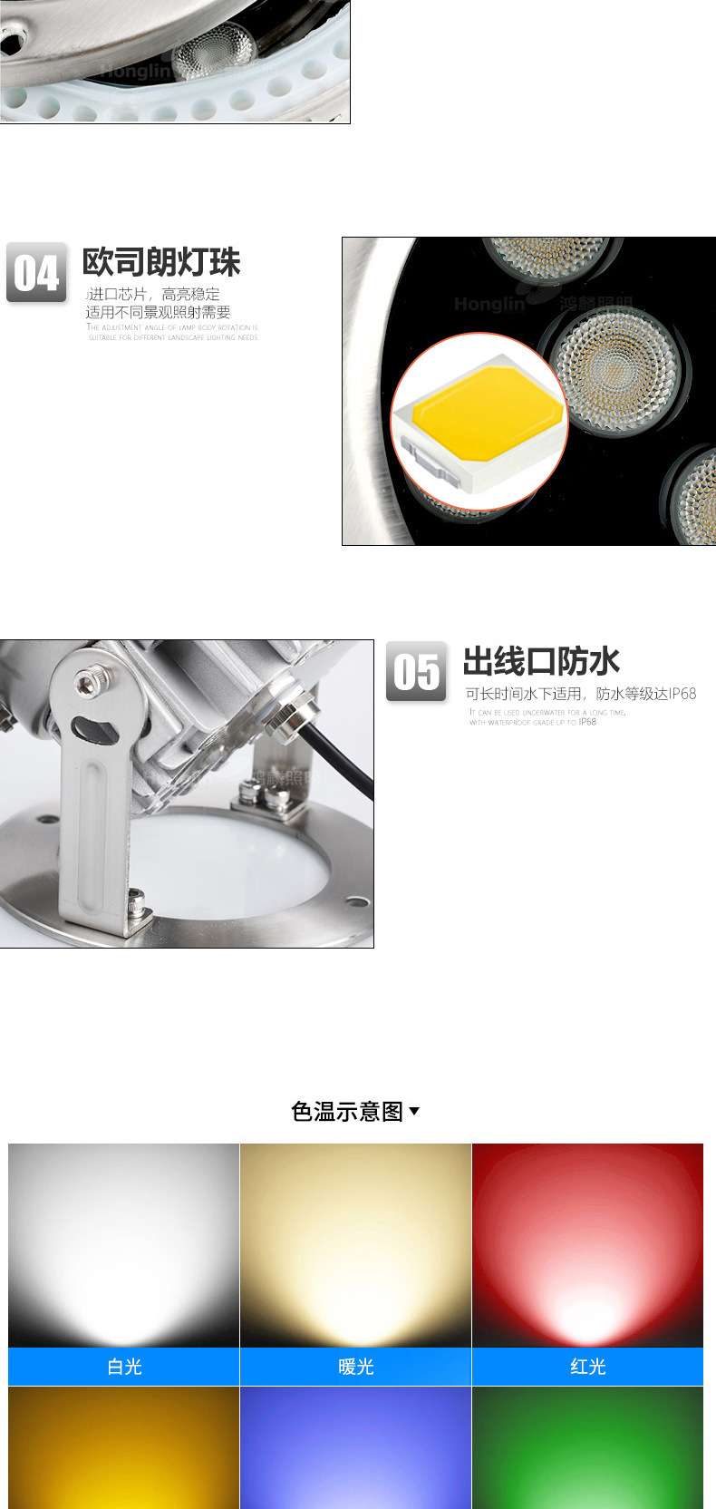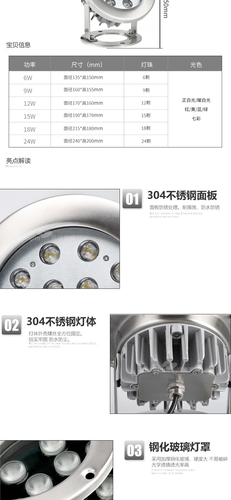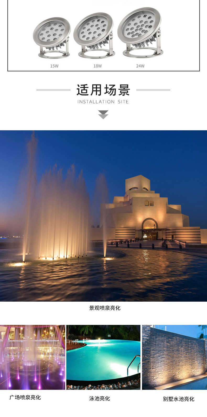 6W9W12W15W18W24W喷泉灯LED七彩RGB