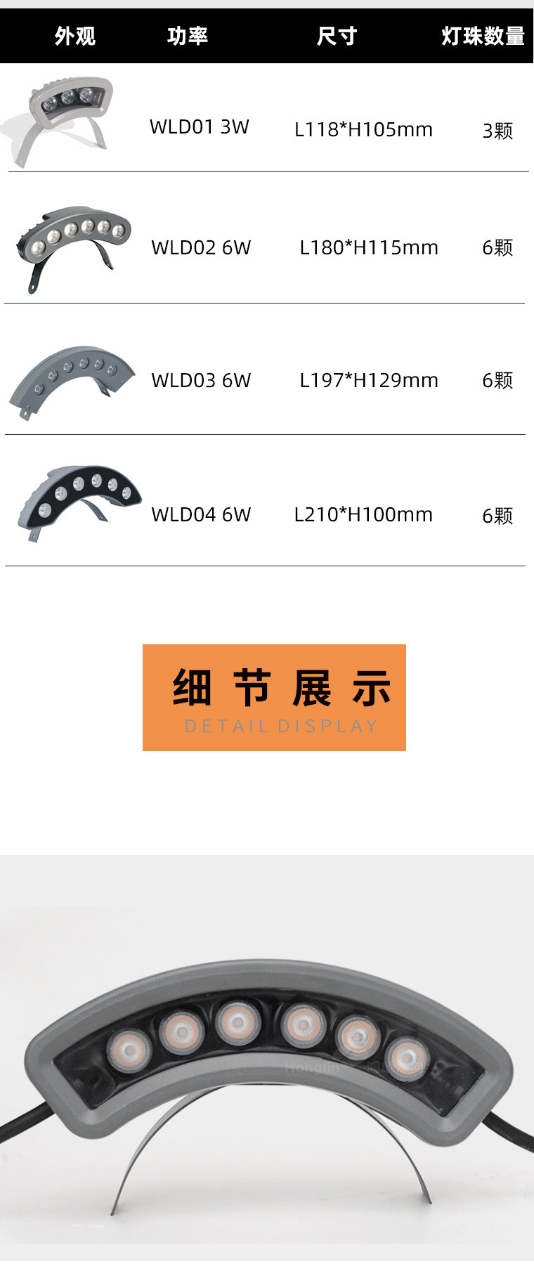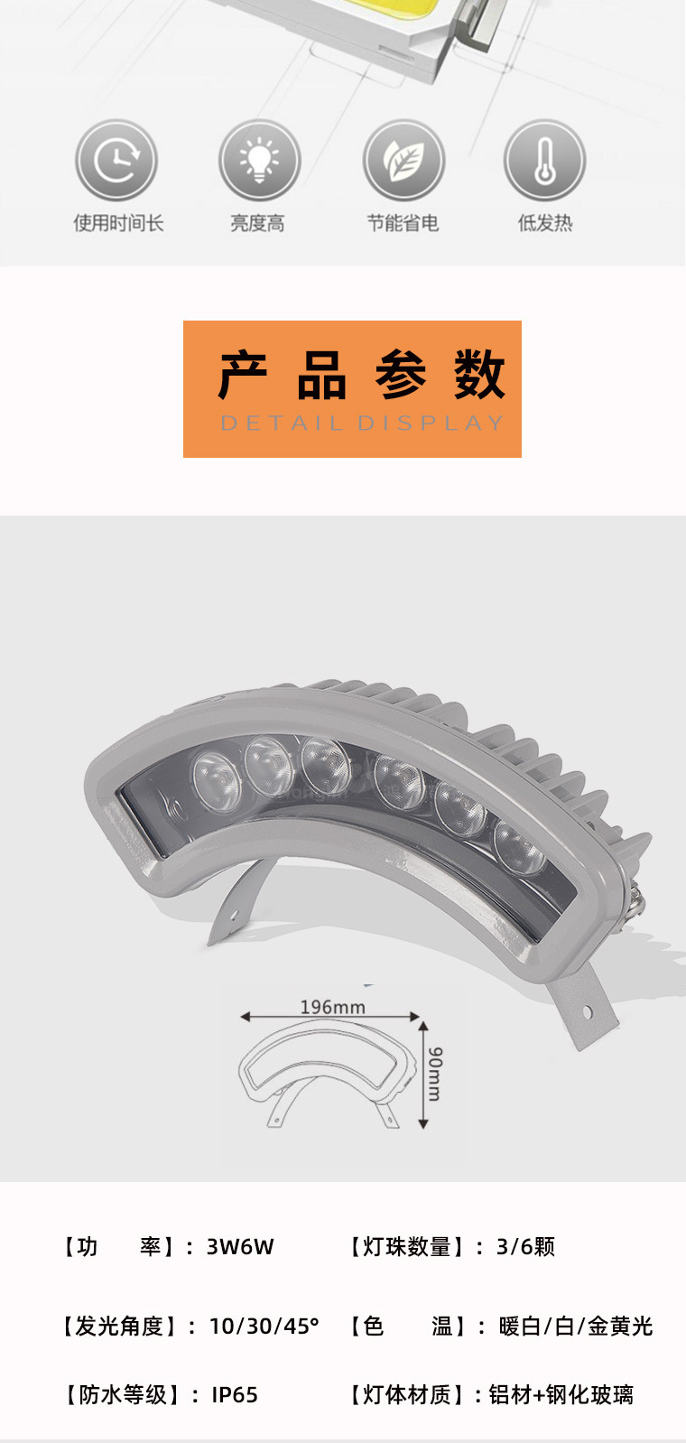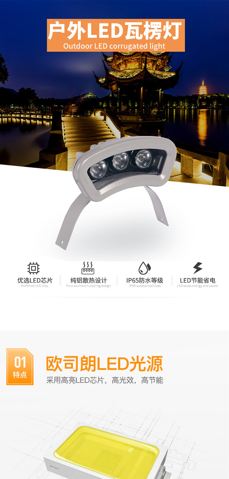 瓦楞灯led投光瓦片灯 户外防水3W 6W月牙灯