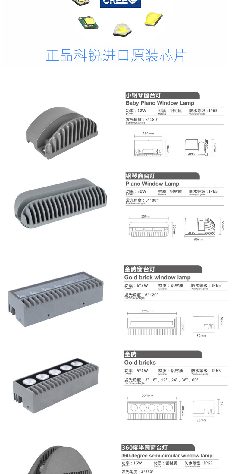 • LED光源品牌 科锐、欧司朗、飞利浦、晶元