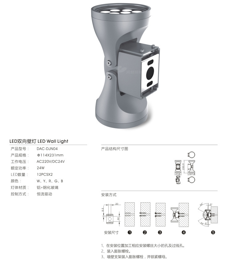 led双头外墙壁灯室外户外防水单头上下照6W12W