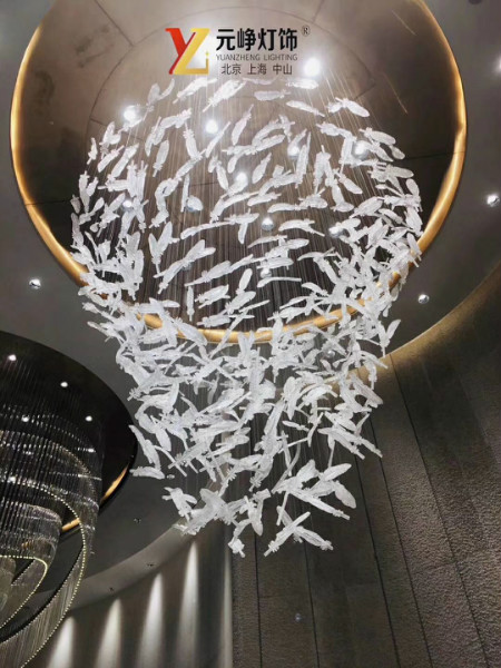 工程灯水晶吊灯可定制酒店大堂工程玻璃羽毛灯
