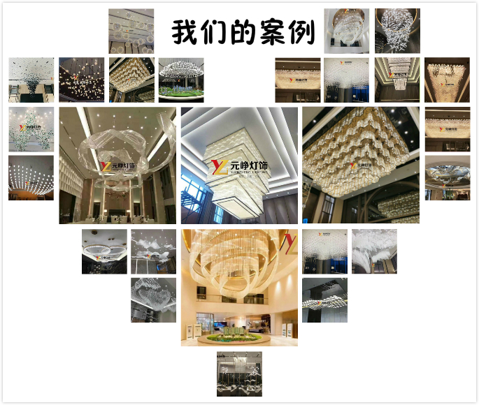 元峥自有专业研发设计,生产,安装团队,提供优质可靠售后服务。我们拥有成熟丰富的工程灯饰生产及施工经验,合作项目涵盖了酒店,会所,售楼处,餐厅,别墅,连锁KTV,以及各商用综合体。