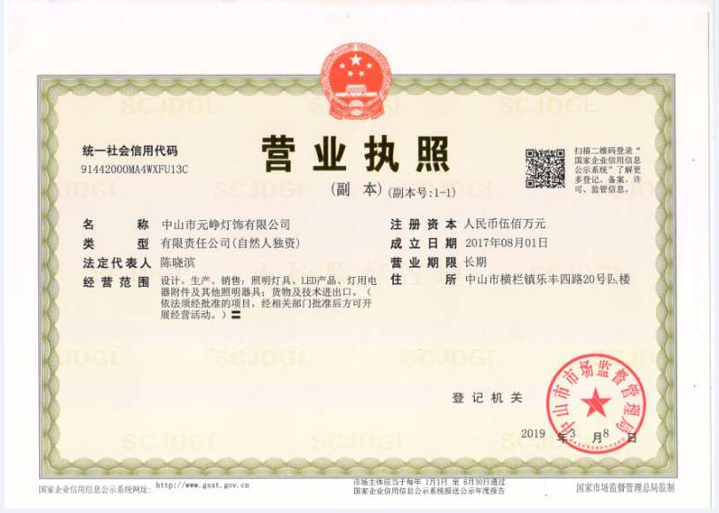 中山市元峥灯饰有限公司