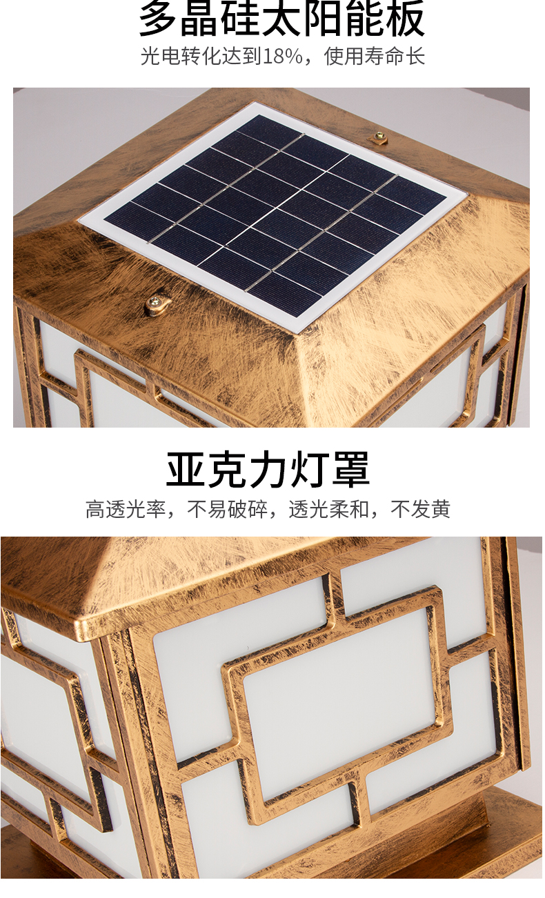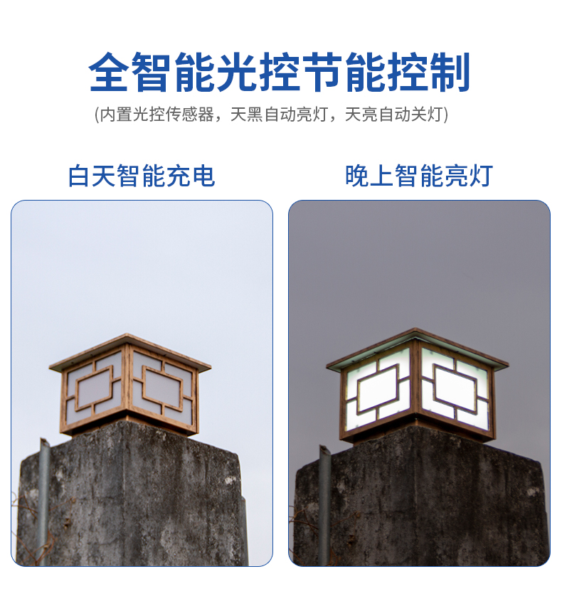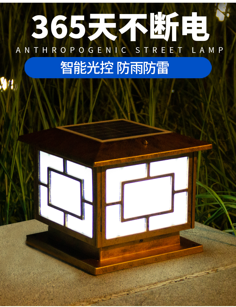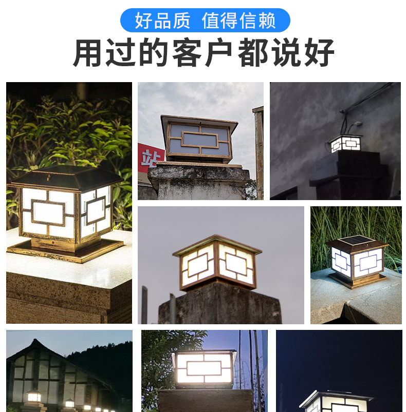 太阳能户外庭院灯家用围墙灯柱头灯中式门柱灯防水花园公园景观灯