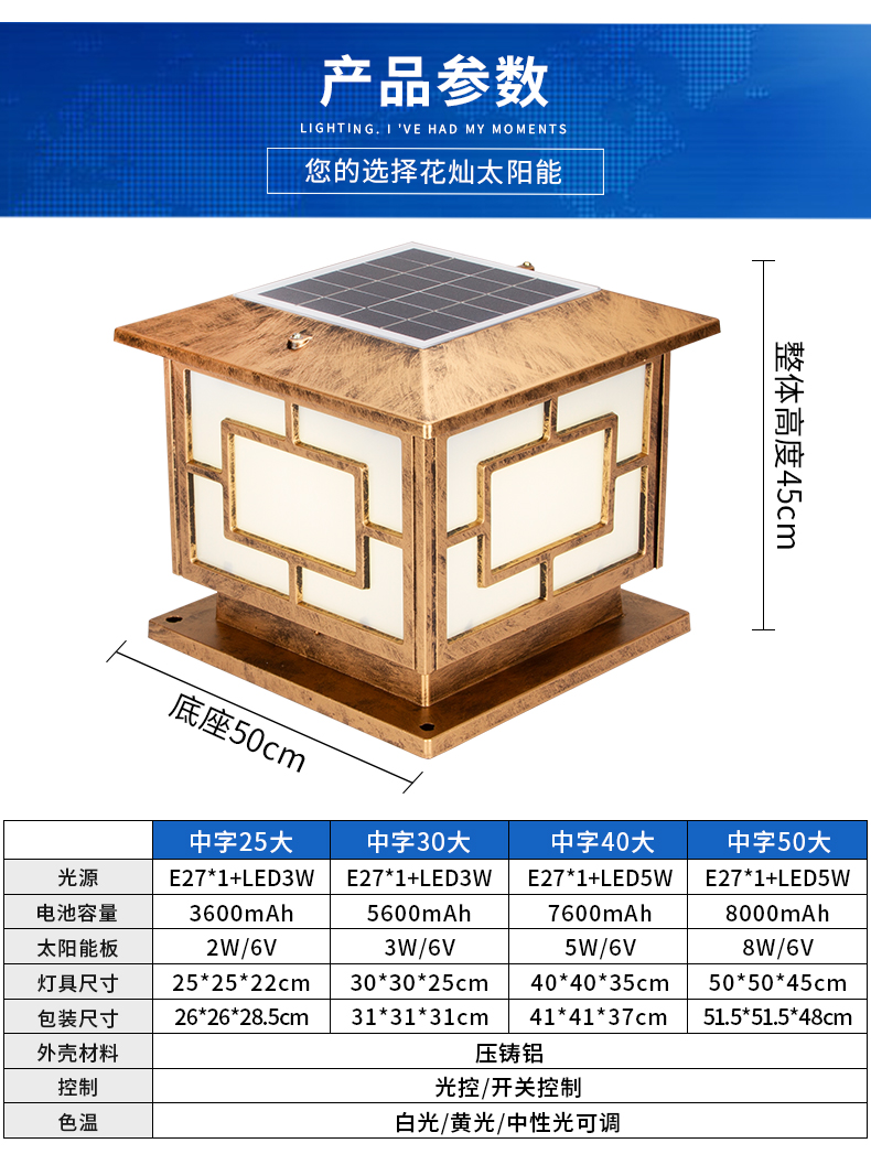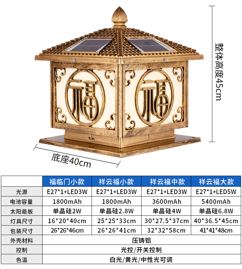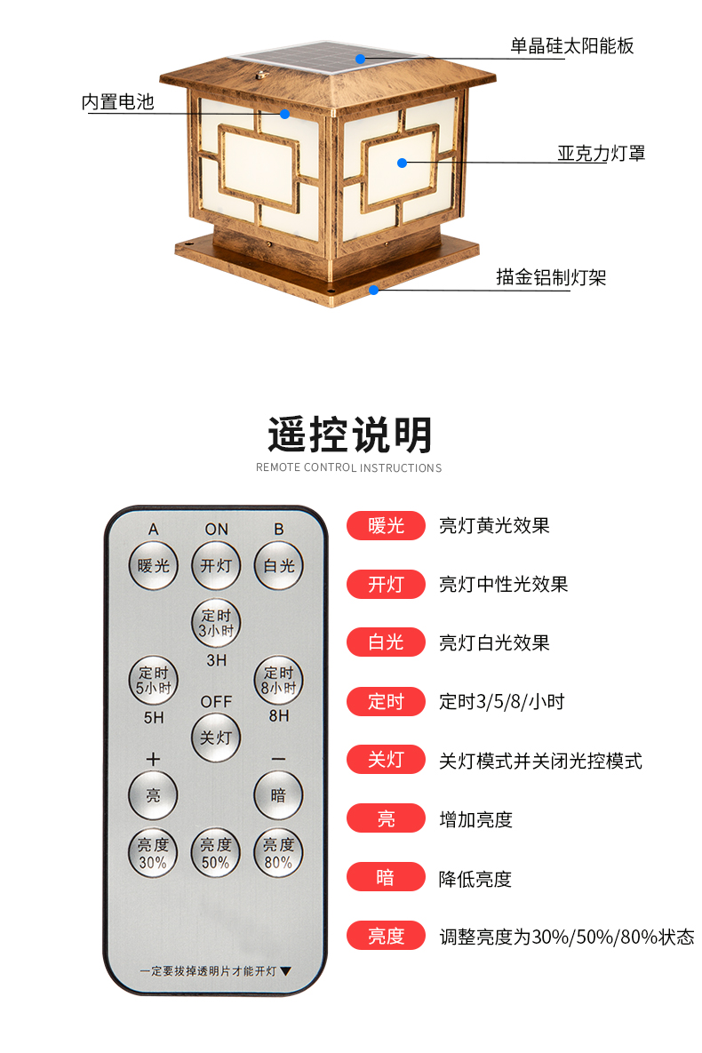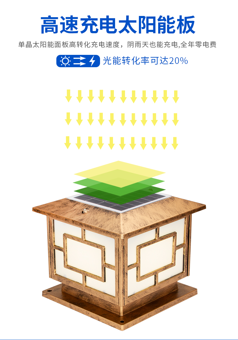 太阳能户外庭院灯家用围墙灯柱头灯中式门柱灯防水花园公园景观灯