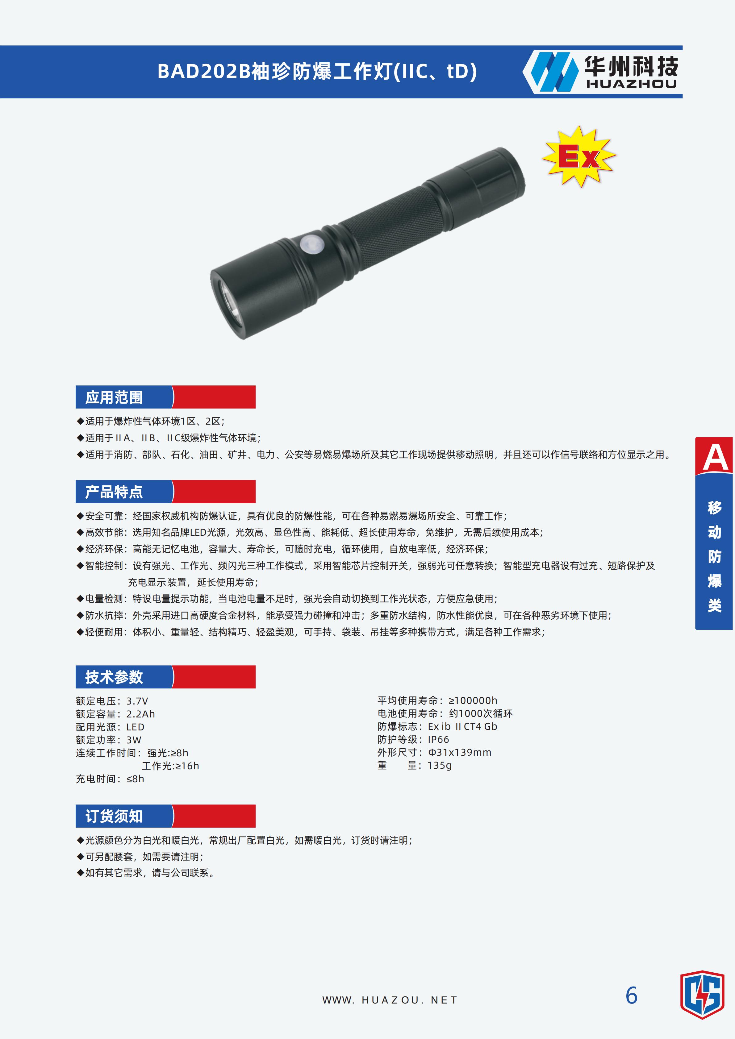 华州科技BAD202B袖珍防爆工作灯-可OEM/ODM代工