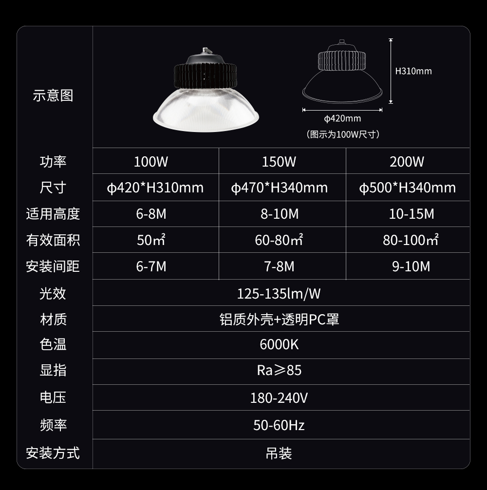 • 灯具直径(mm) Φ301-500mm