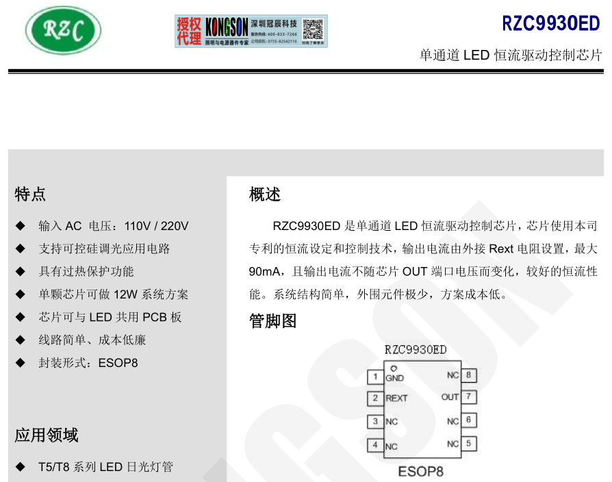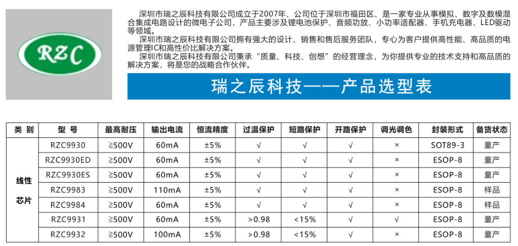 RZC9930ED 单通道 LED 恒流驱动控制芯片