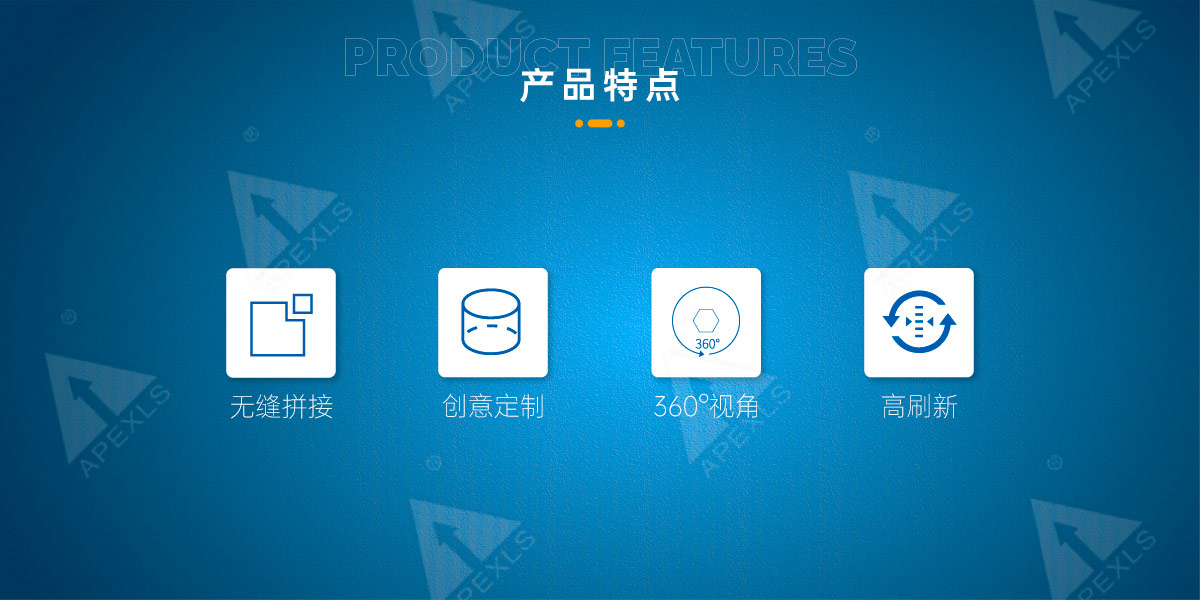 深圳市康硕展电子有限公司是一家以技术创新为主导的国家高新技术企业,拥有一支行业顶尖水平的创意显示屏设计团队,获得国家专利九十余项,其中发明专利十余项,是国内外技术领先的LED创意定制化设计服务商,并已成功为全球80多个国家和地区提供了LED创意显示定制化产品解决方案与服务。多年以来,康硕展始终坚持创新发展的理念,公司已成为在行业领先的包括创意设计、方案制作、生产制造、工程安装和售后服务为一体化的LED创意显示屏系统解决方案服务商,为众多客户定制高端创意显示产品,公司产品已经形成了球形显示屏、易拉罐显示屏、三角形显示屏、柔性显示屏、内球幕显示屏、圣诞树显示屏、杯型显示屏、钻石显示屏等为代表的创意显示屏,受到国内外客户的高度评价;同时公司的小间距显示屏产品、户内外常规显示屏在国内外也有很高的声誉。“创意无限,精彩无限”,康硕展致力于打造世界创意显示的领航者和一流的LED显示屏服务商。